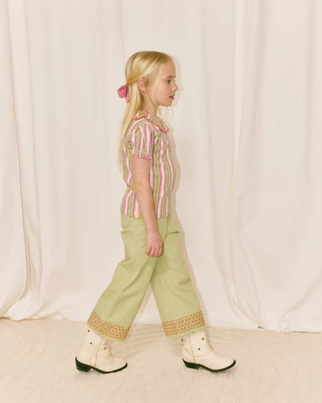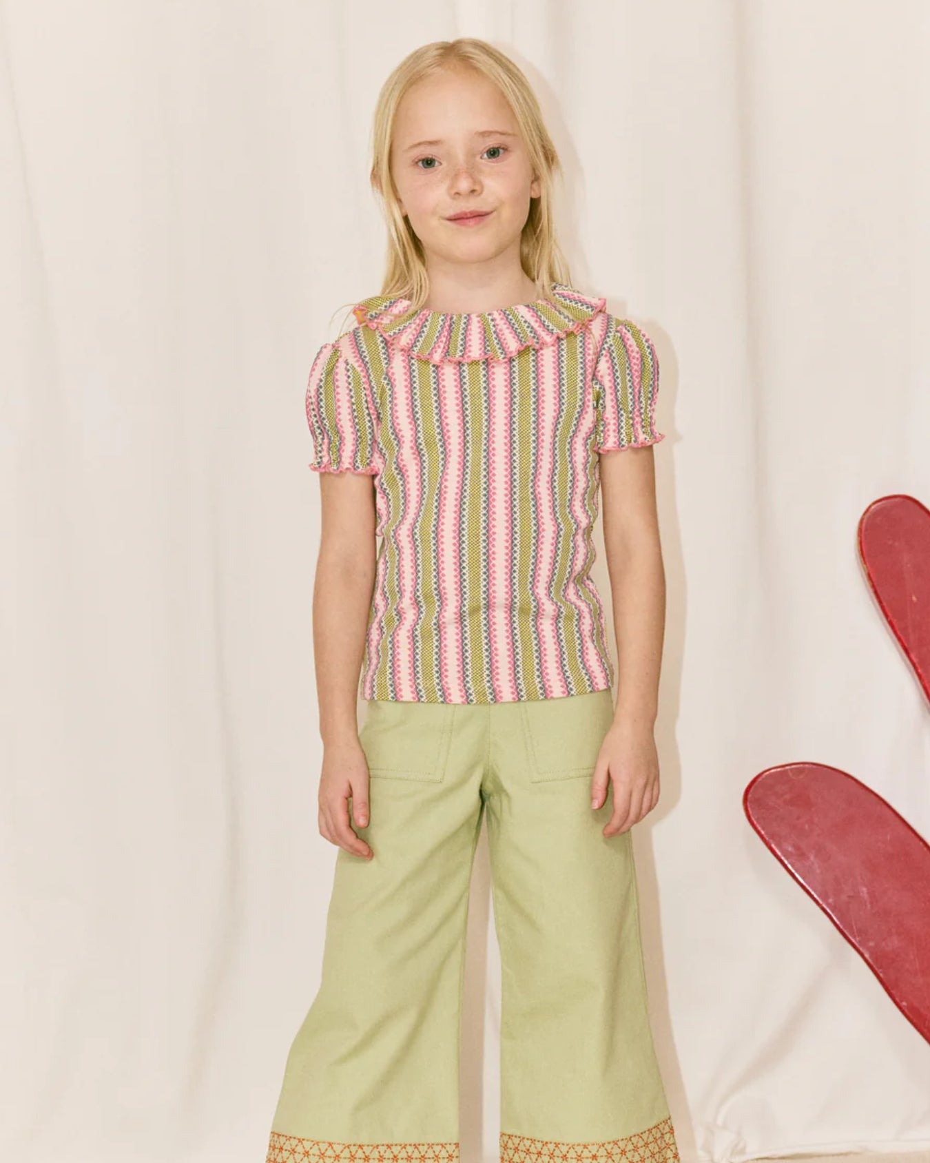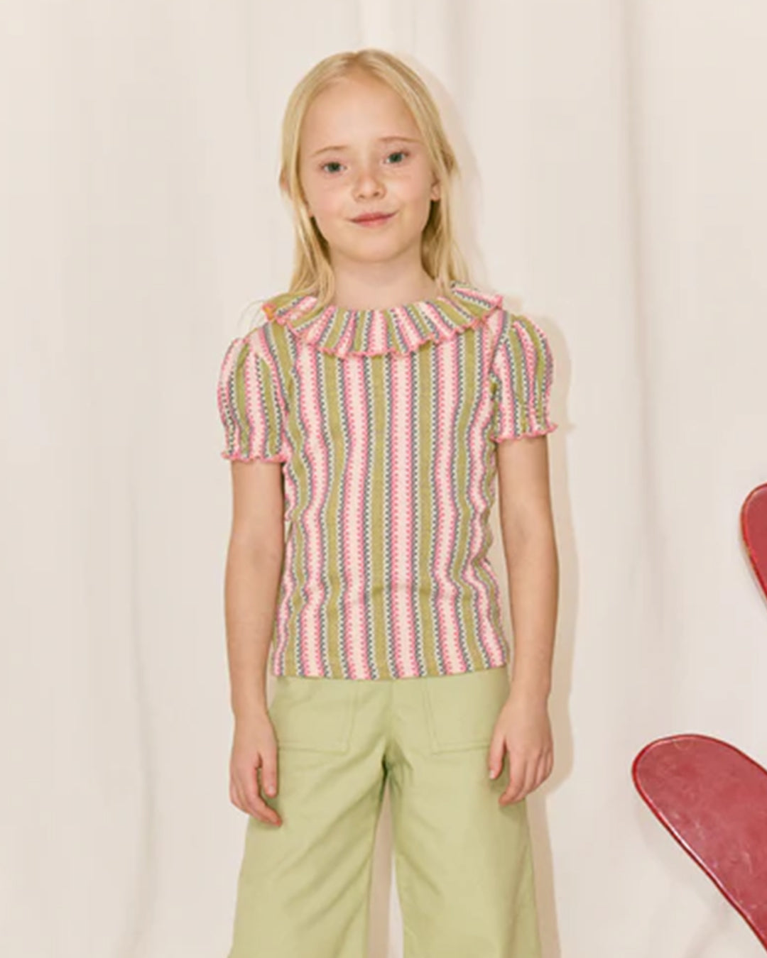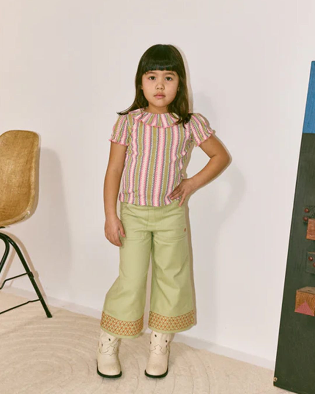 · Aura vaquero stripe Paloma tee in soft pink, yellow, and blue stripes