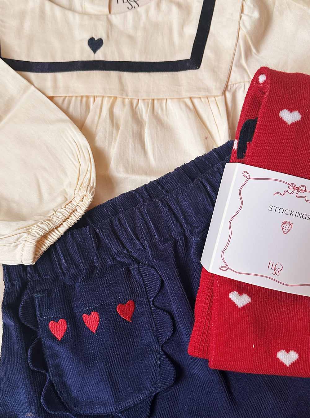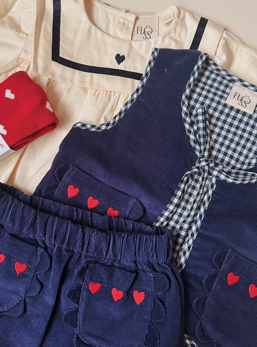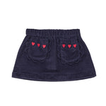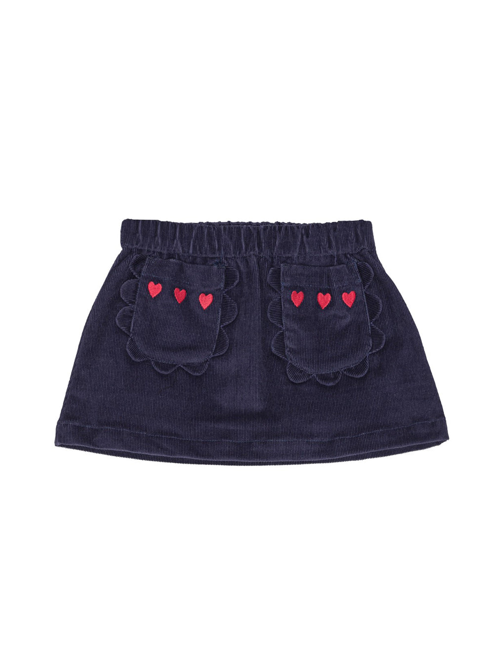 · Soft navy corduroy skirt with a comfortable elastic waistband