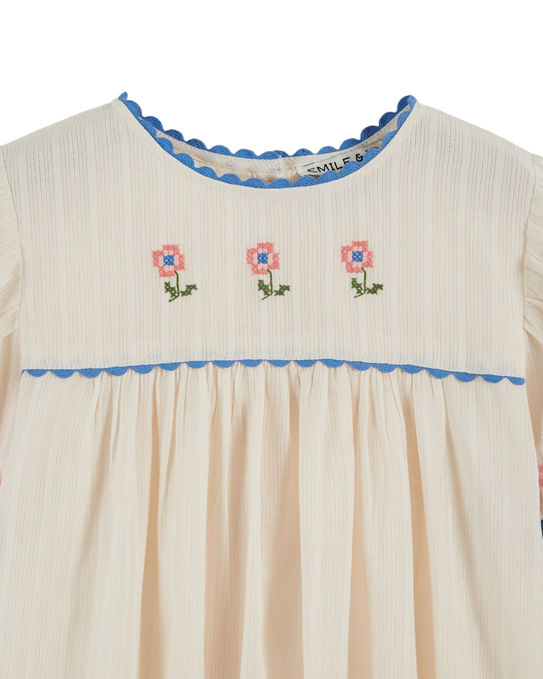 에밀 에 이다 :: 블라우스 브로디 크림 / 블루 앤 핑크