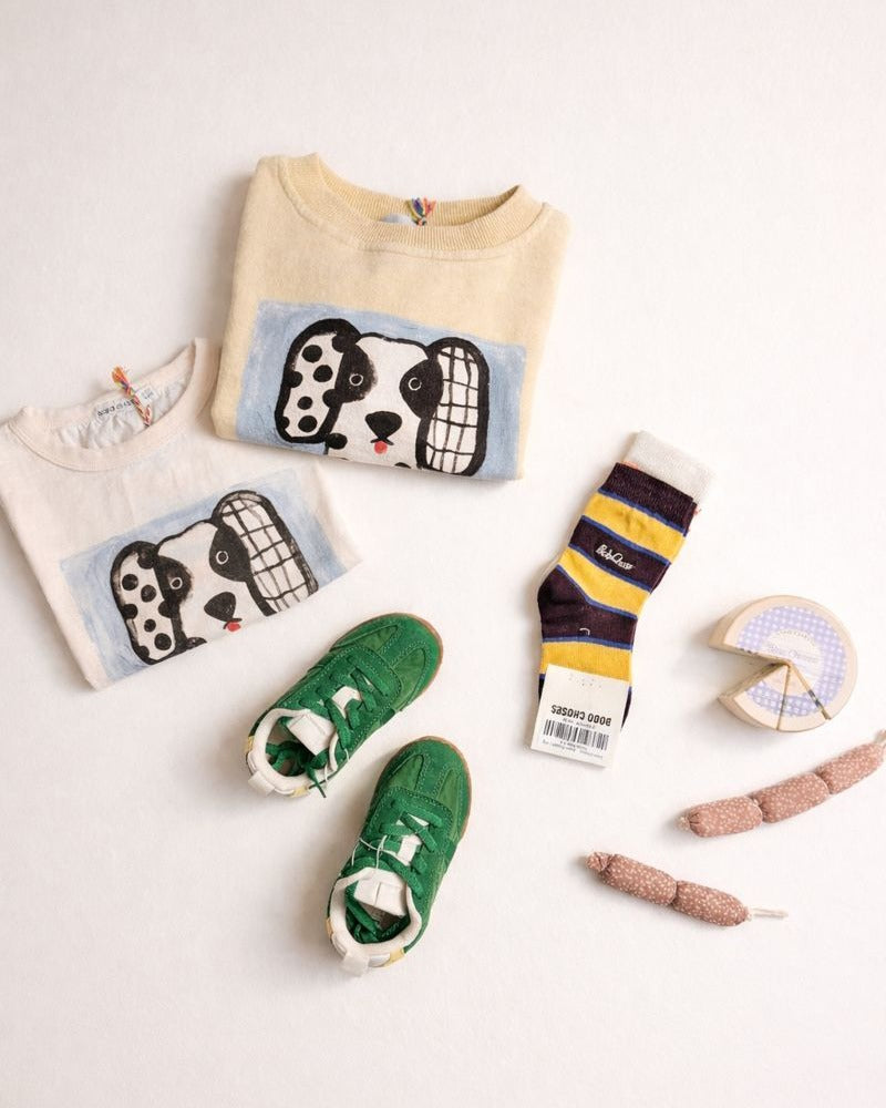 • 부드러운 면 혼방 양말 2켤레 세트 • 보보 초세스 로고 디테일이 있는 스트라이프 디자인 • 골지 소매단으로 안정적이고 편안한 착용감 제공 일상 필수품에 유쾌함을 더했습니다