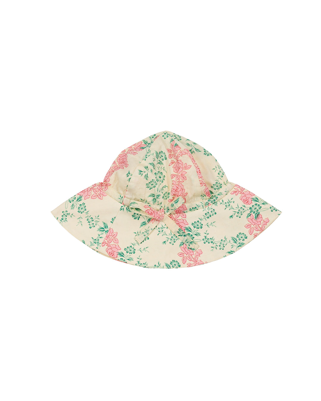 · Classic floral sun hat in soft ivory with pink and green blooms