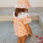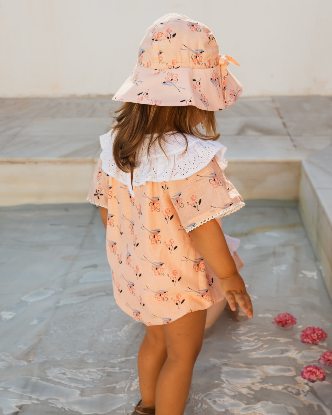 · Flutter sleeves with scalloped trim for a vintage-inspired touch