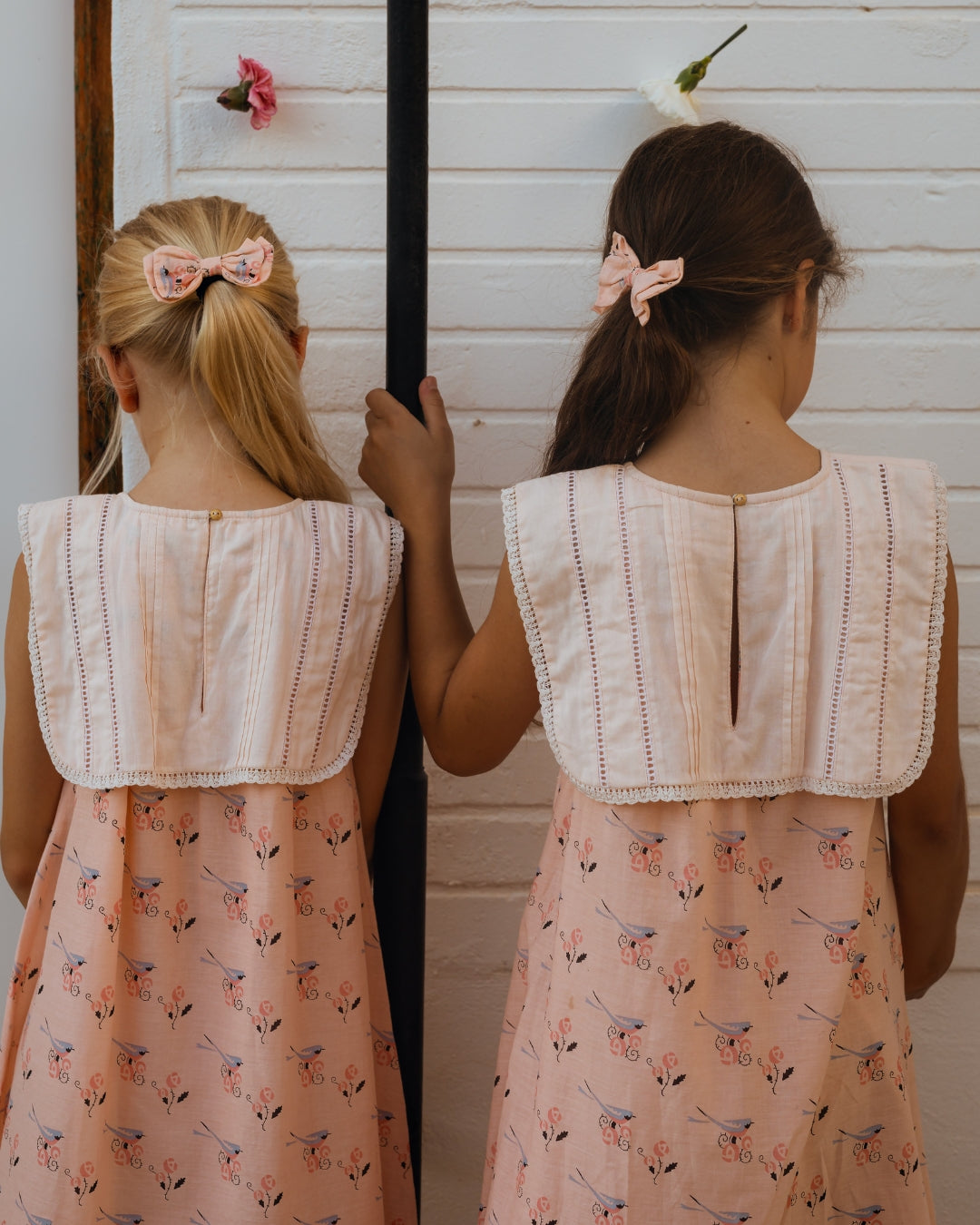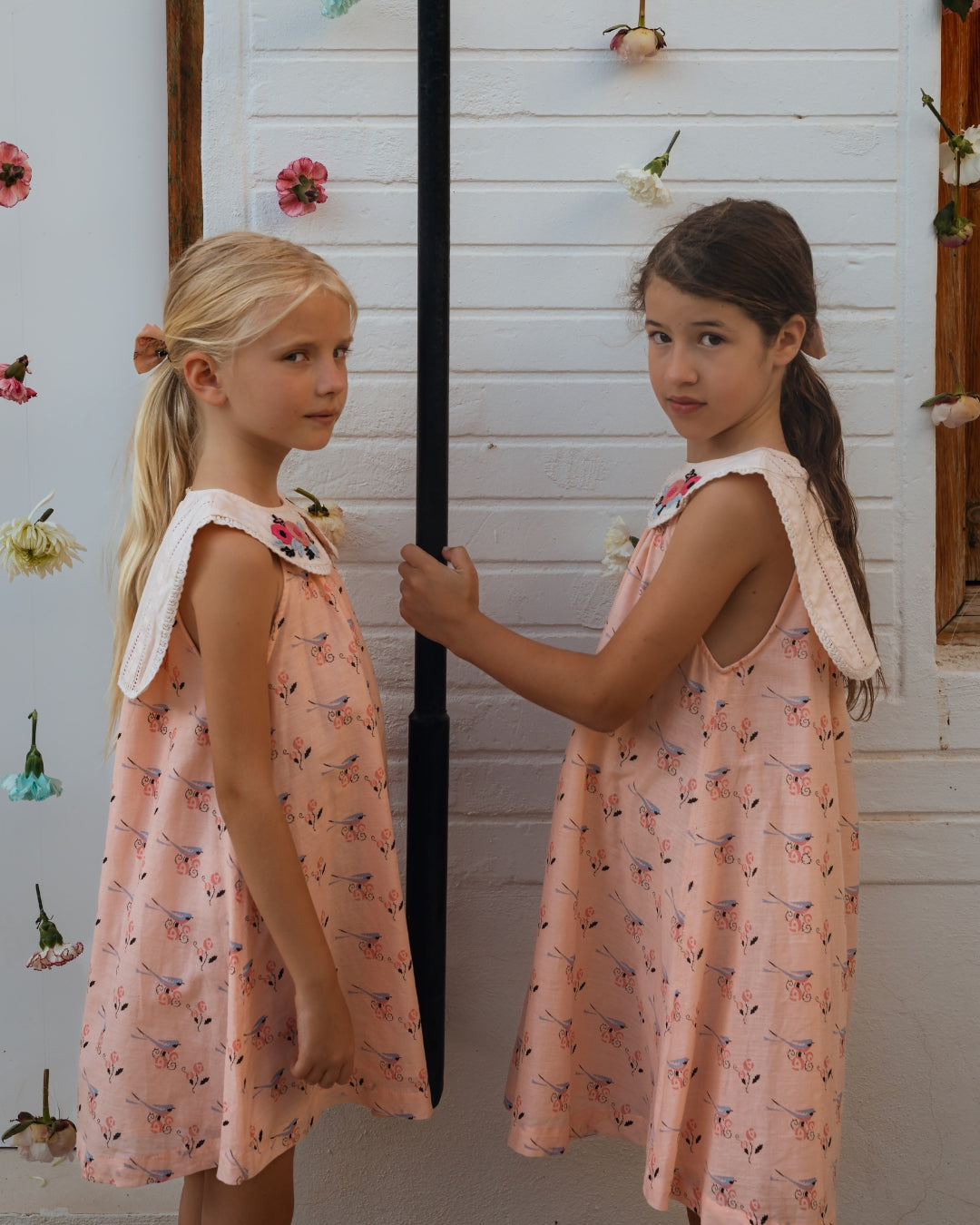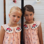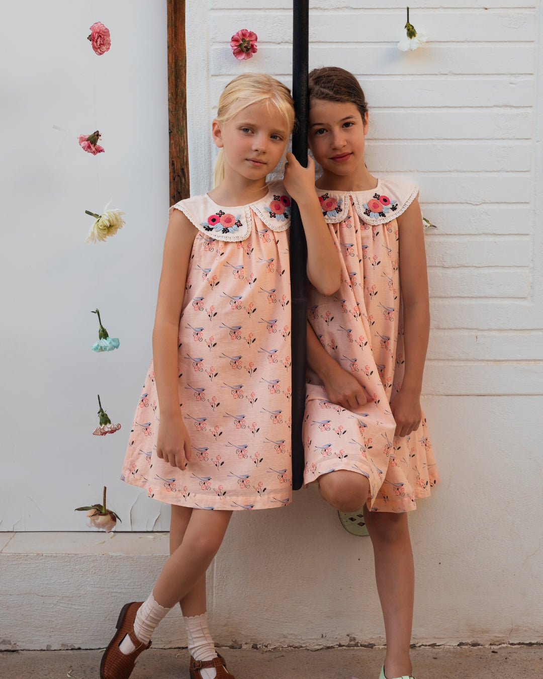 · Vintage-inspired dress in a soft blush bird-and-floral print