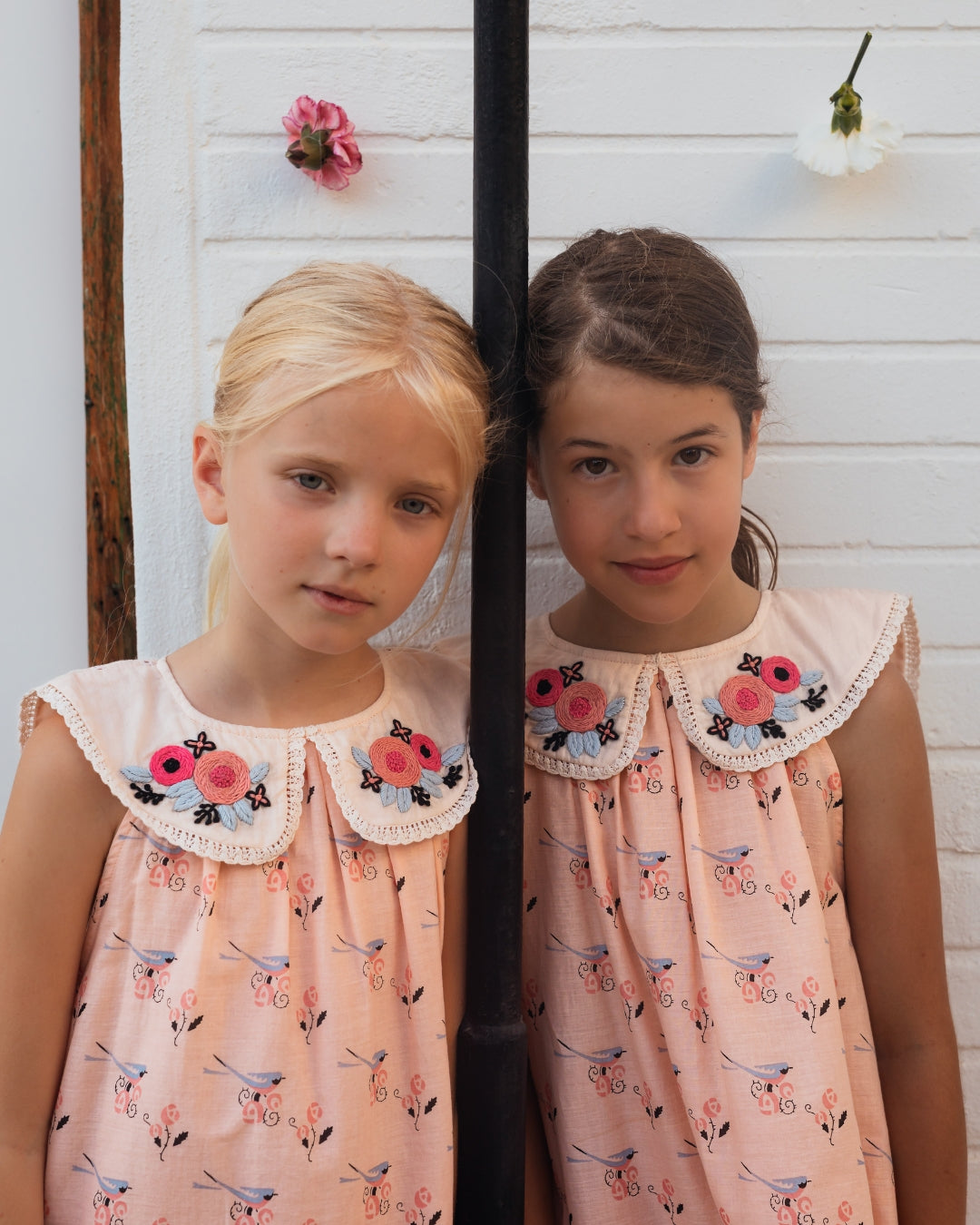 · Oversized lace-trimmed collar with delicate embroidered floral details