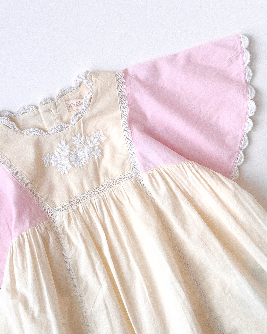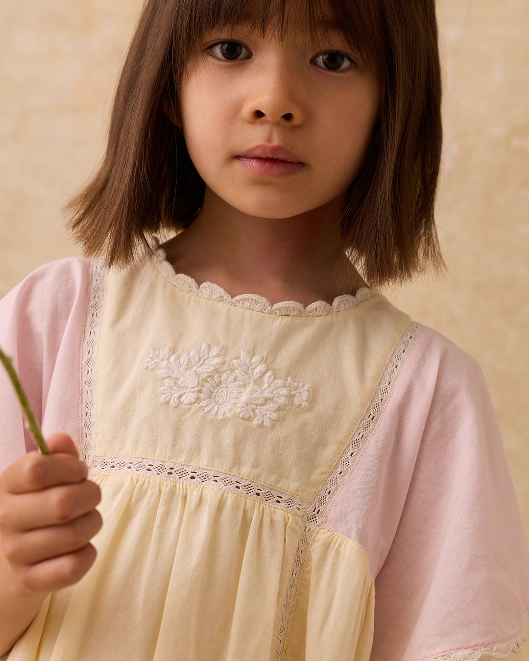 • 섬세한 레이스 장식과 가슴 부분의 은은한 자수 디테일로 빈티지한 느낌을 더했습니다.