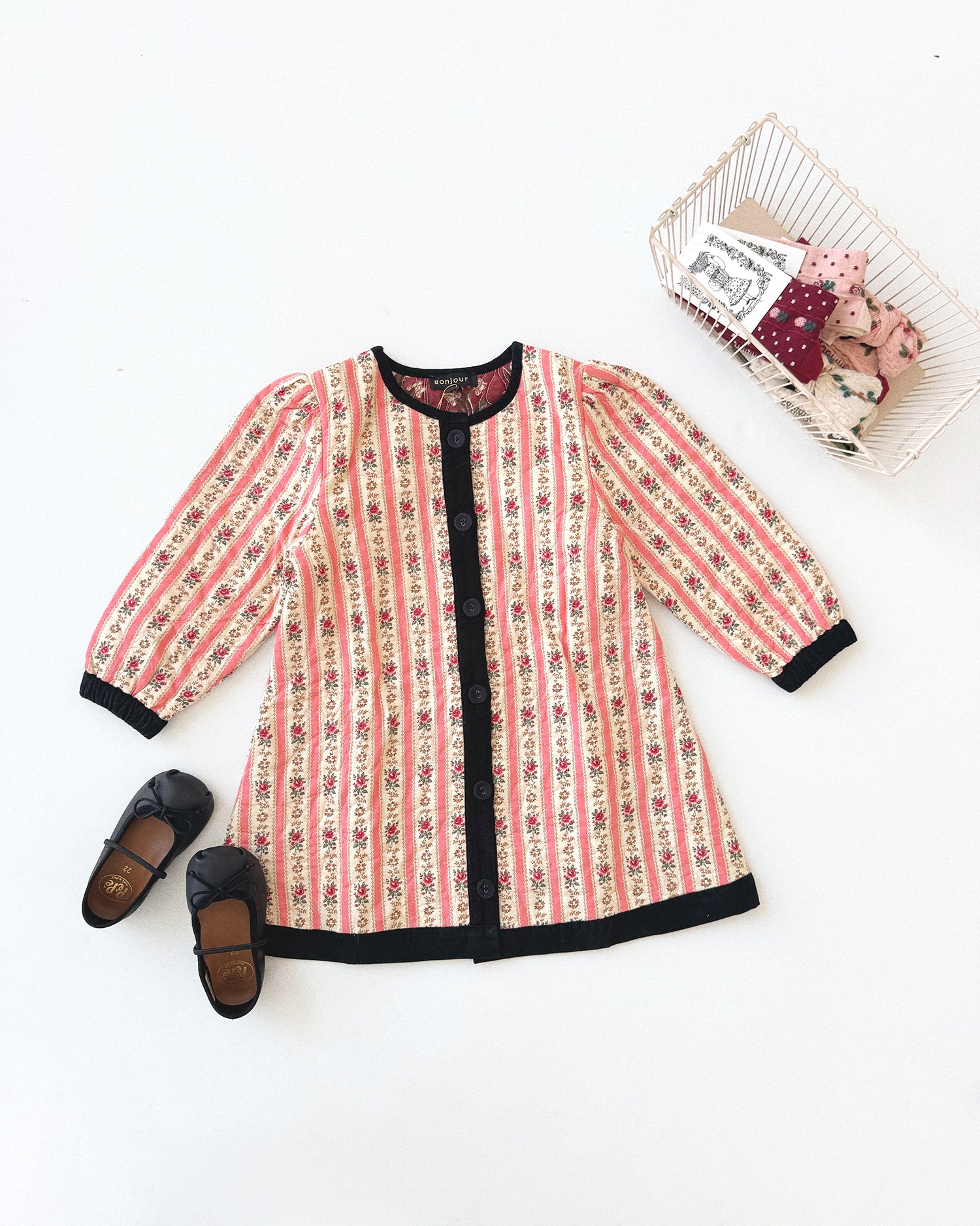 Bonjour Diary :: Dress Coat With Scarf Tapestry Pink Stripe Print