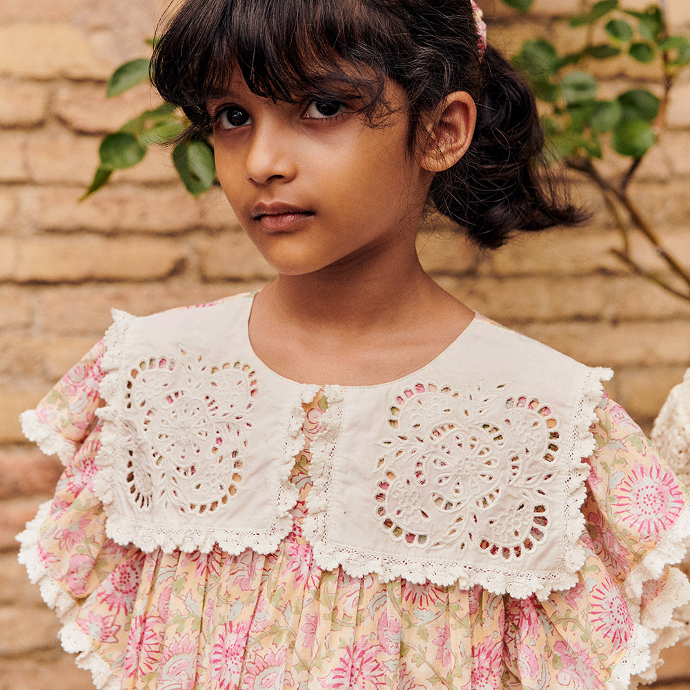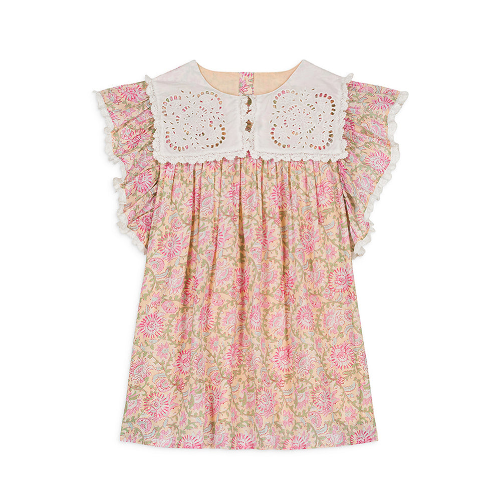 · 오픈워크 자수와 레이스 가장자리가 있는 대형 팝린 칼라
