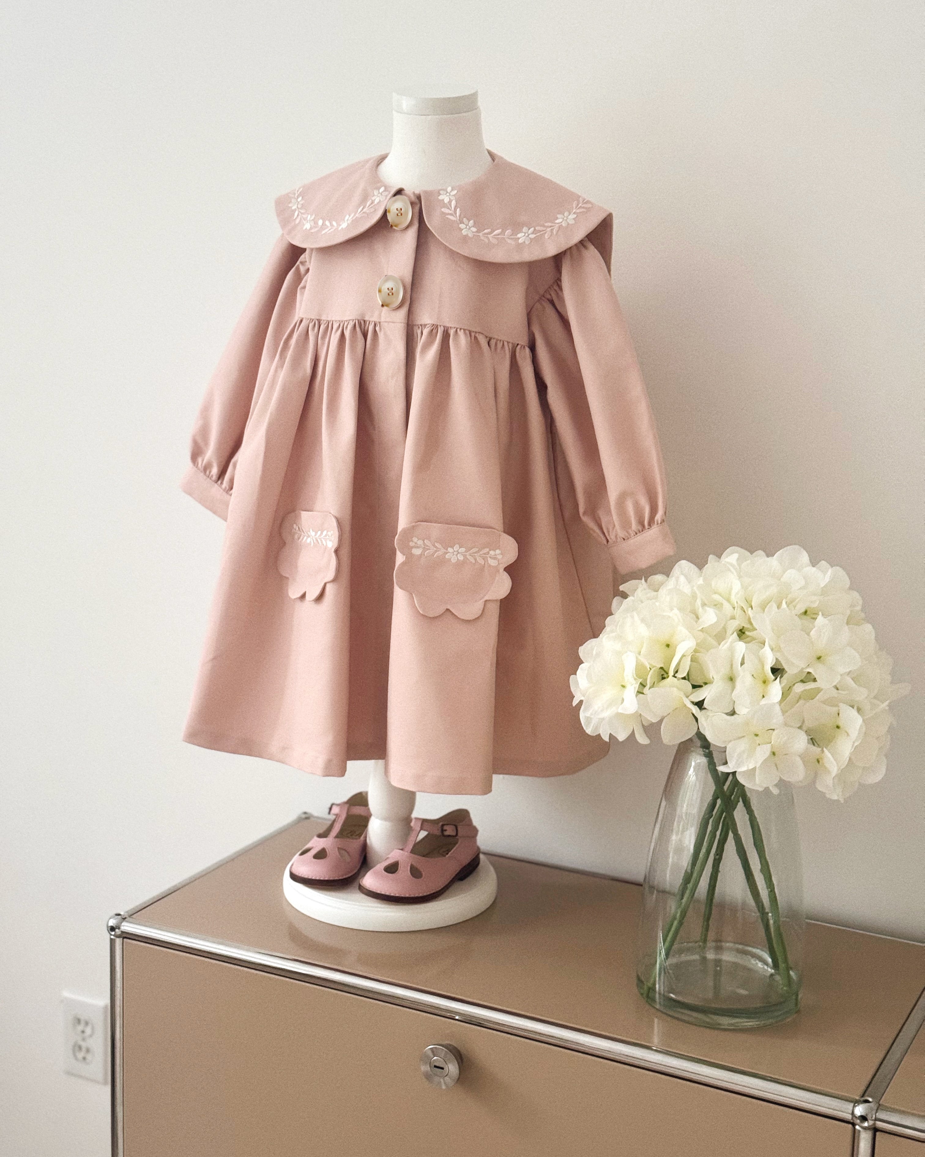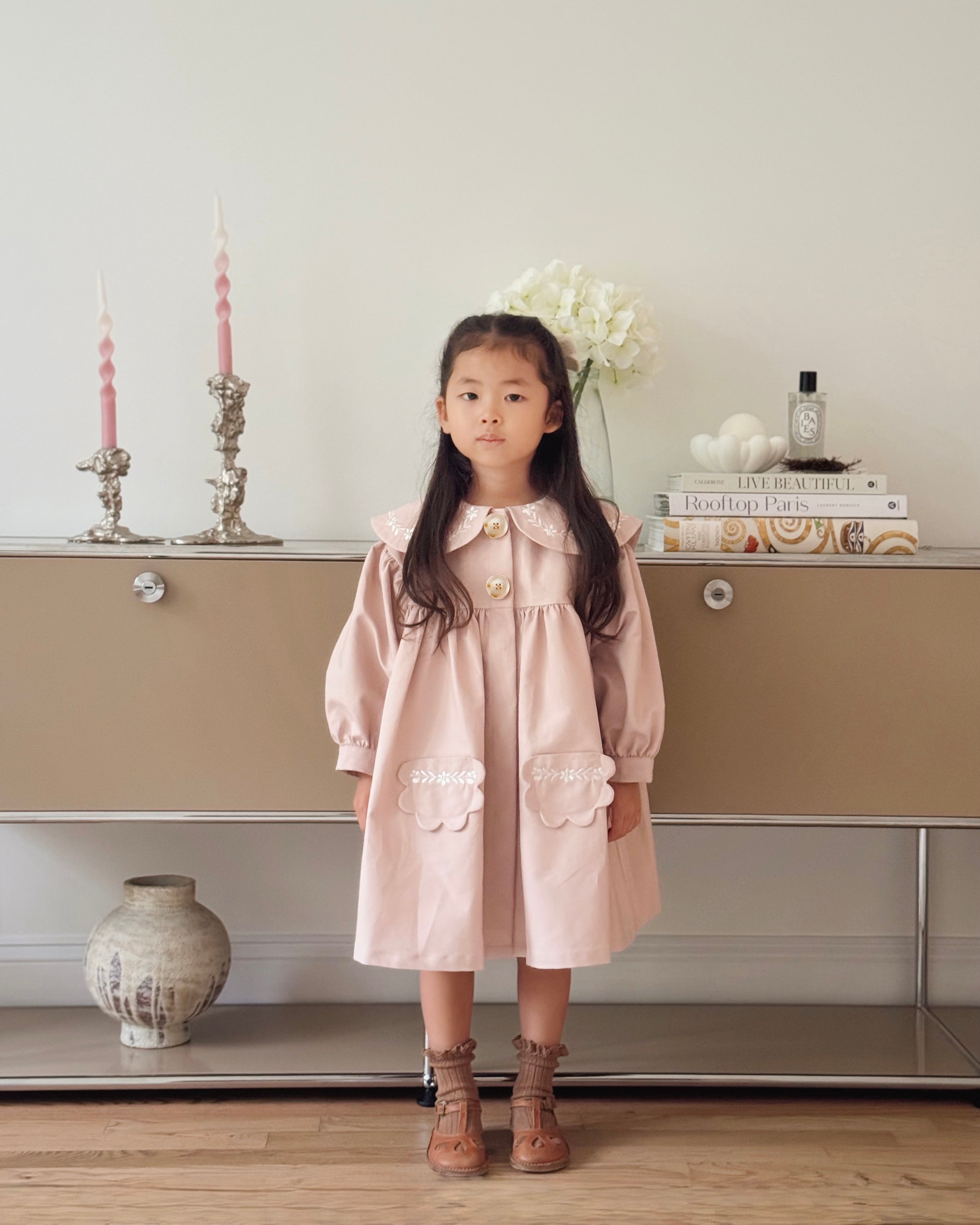 [Exclusive] Mes Kids Des Fleurs :: Floral Embroidery Trench Coat Soft Pink