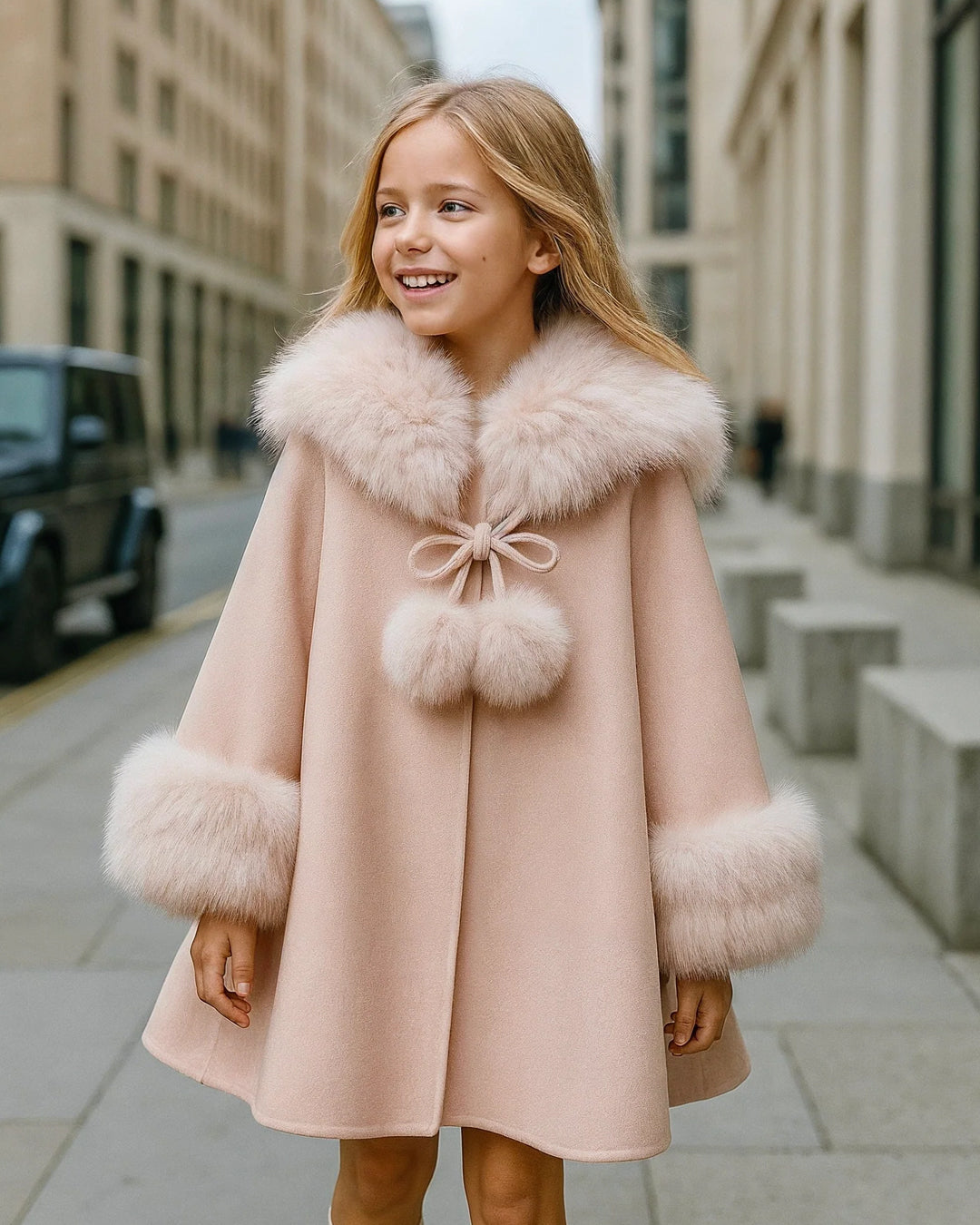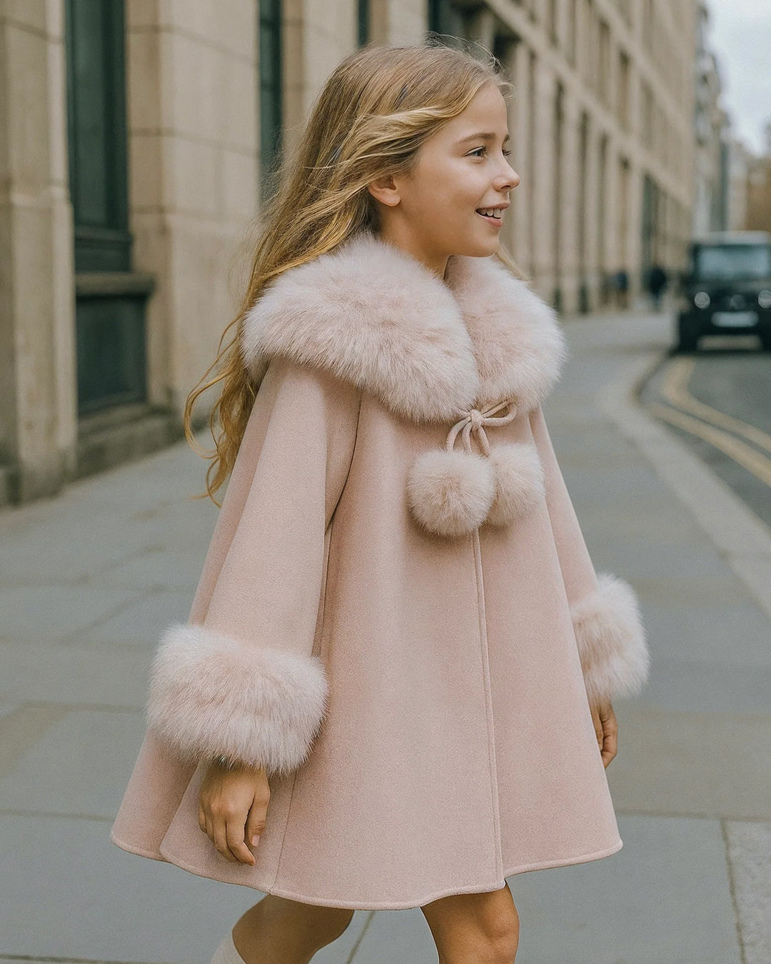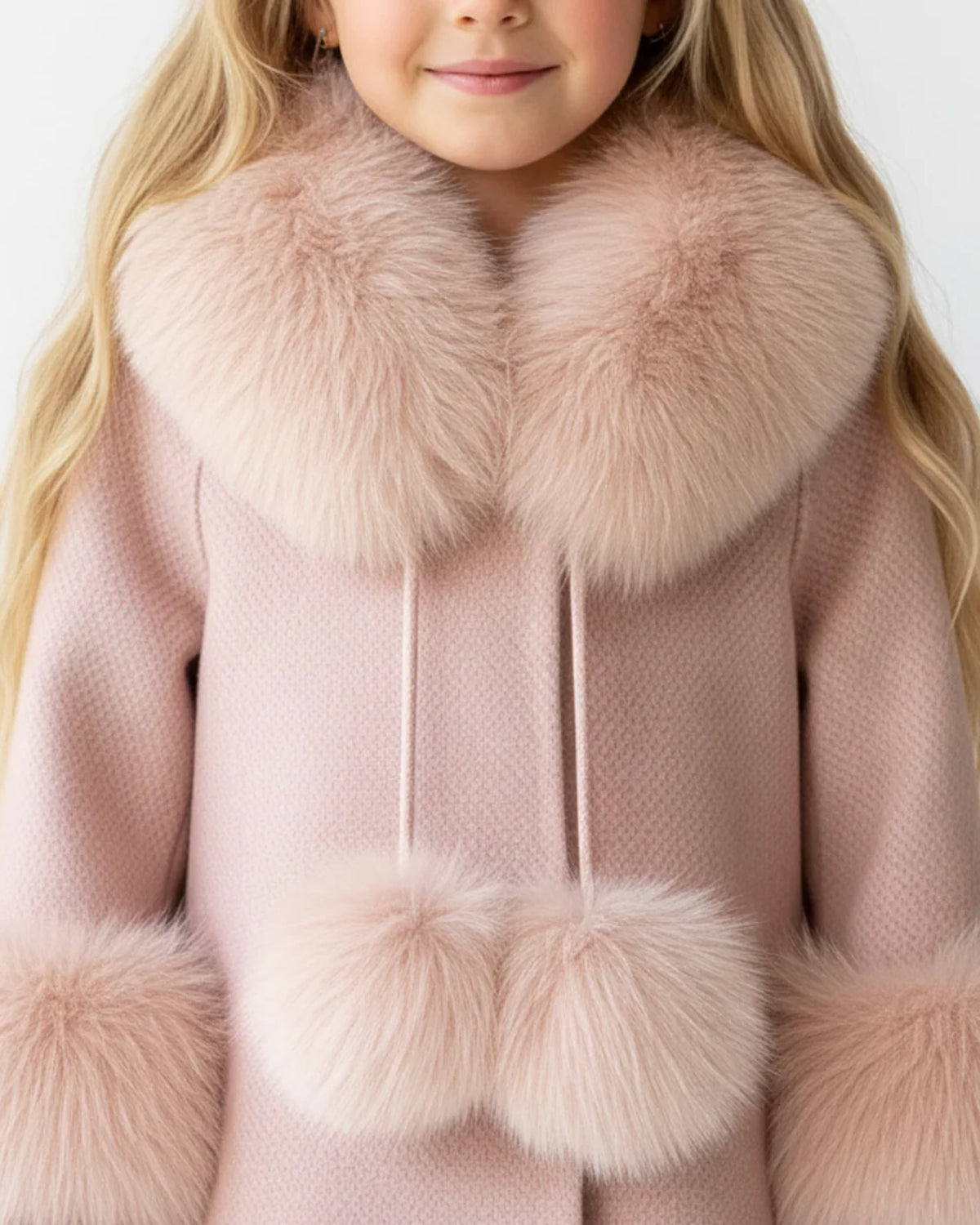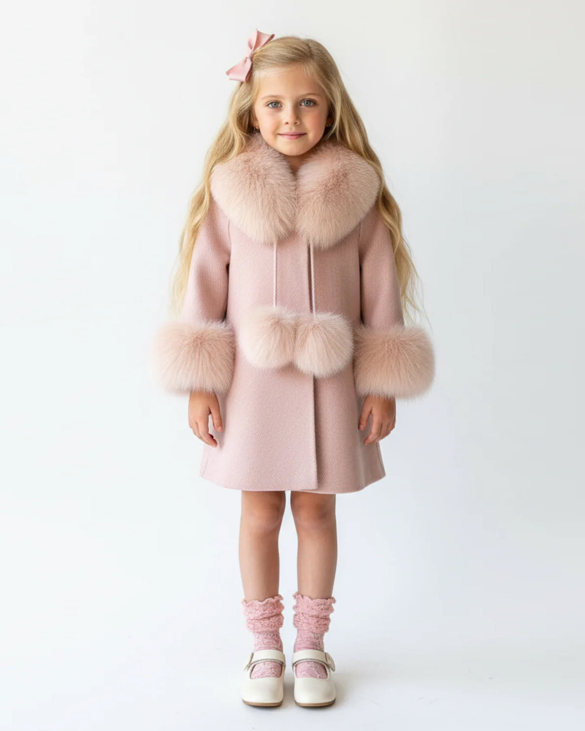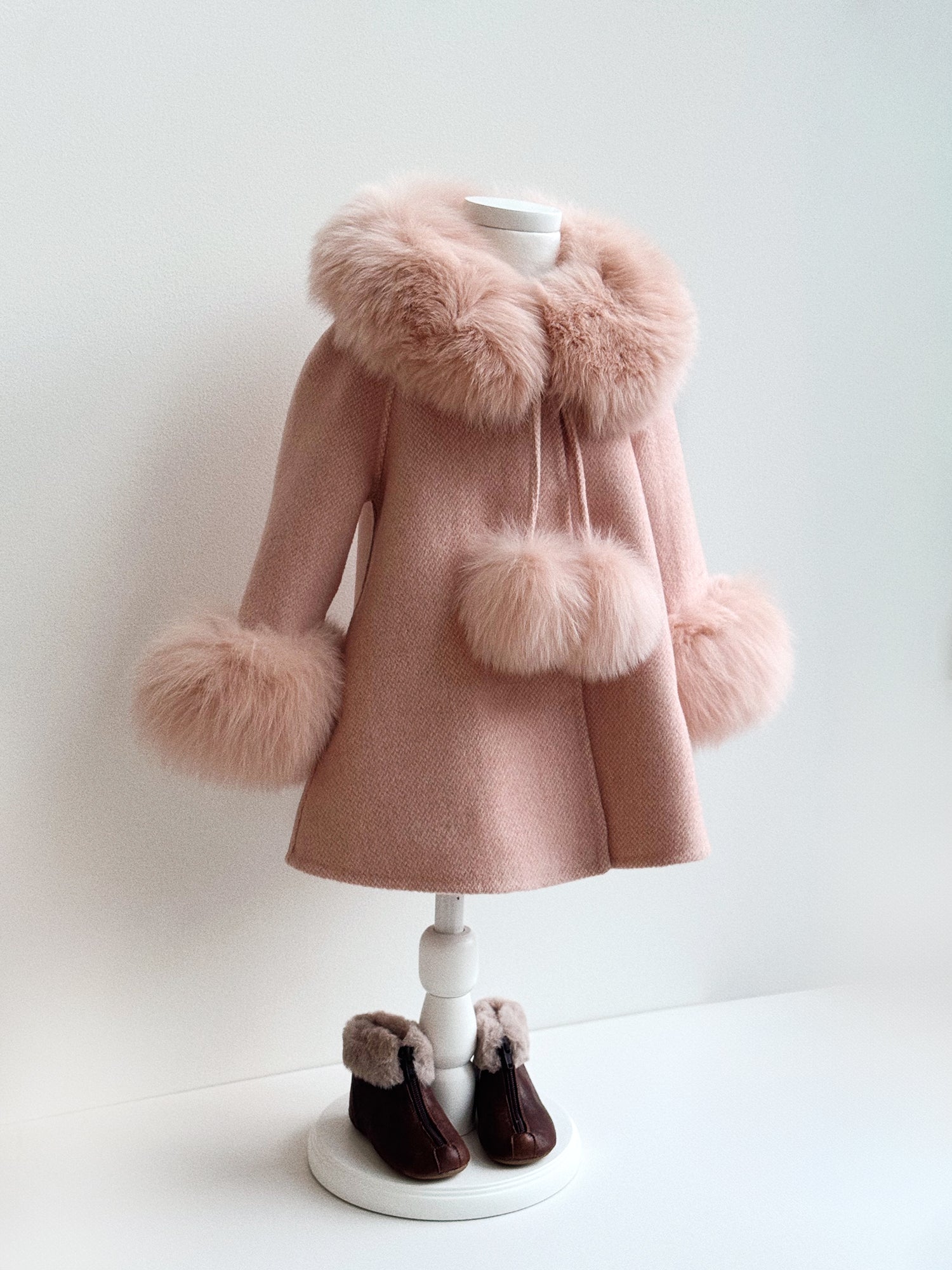 Bobble Babies :: Fur Collar Pom Coat Blush
