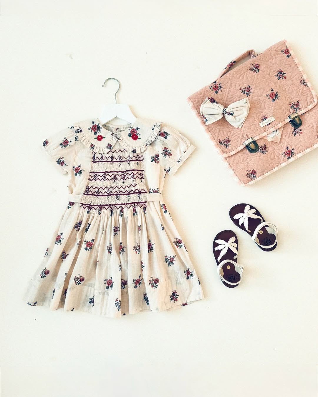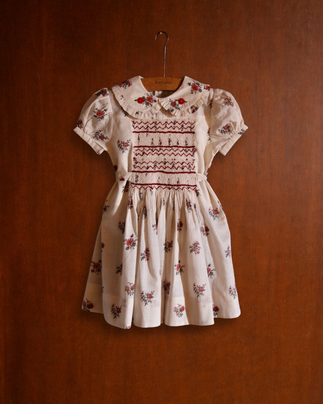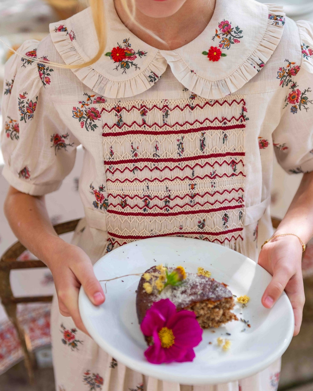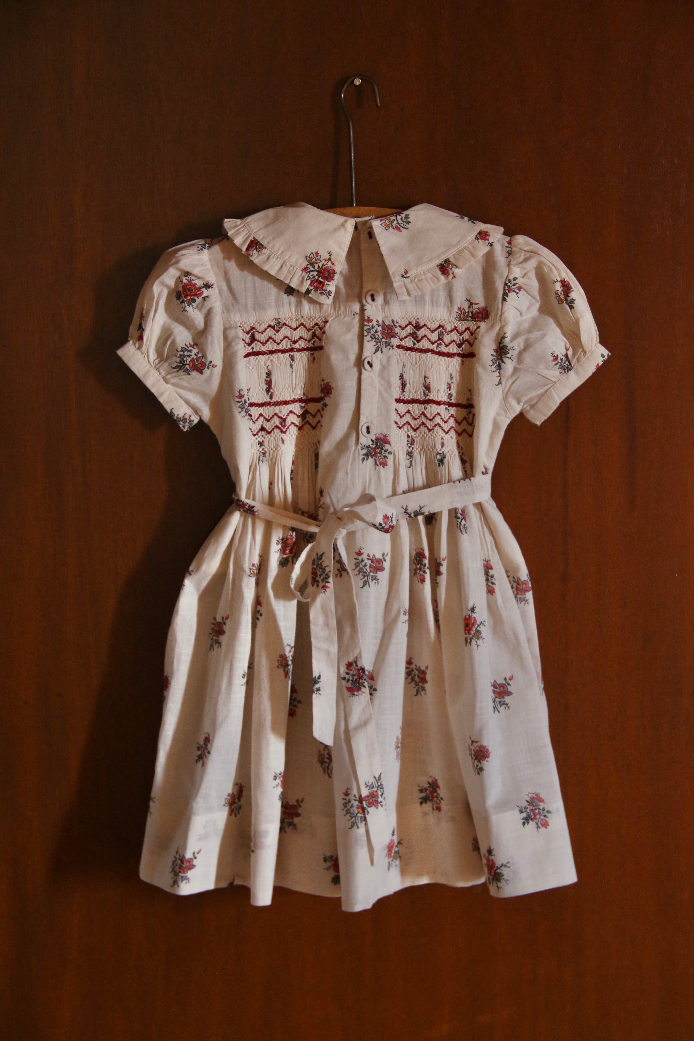 · A classic hand-smocked dress in a delicate garden floral print