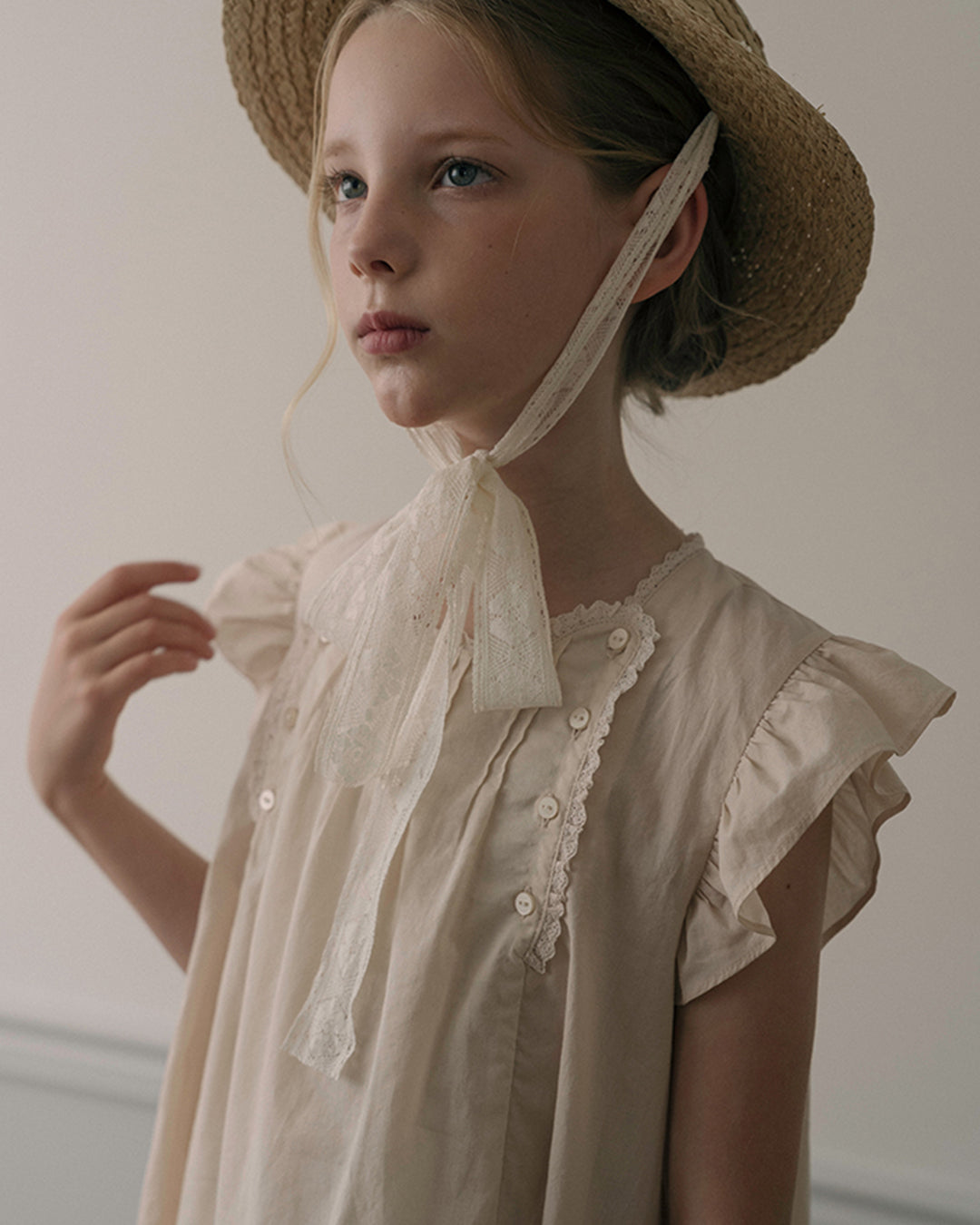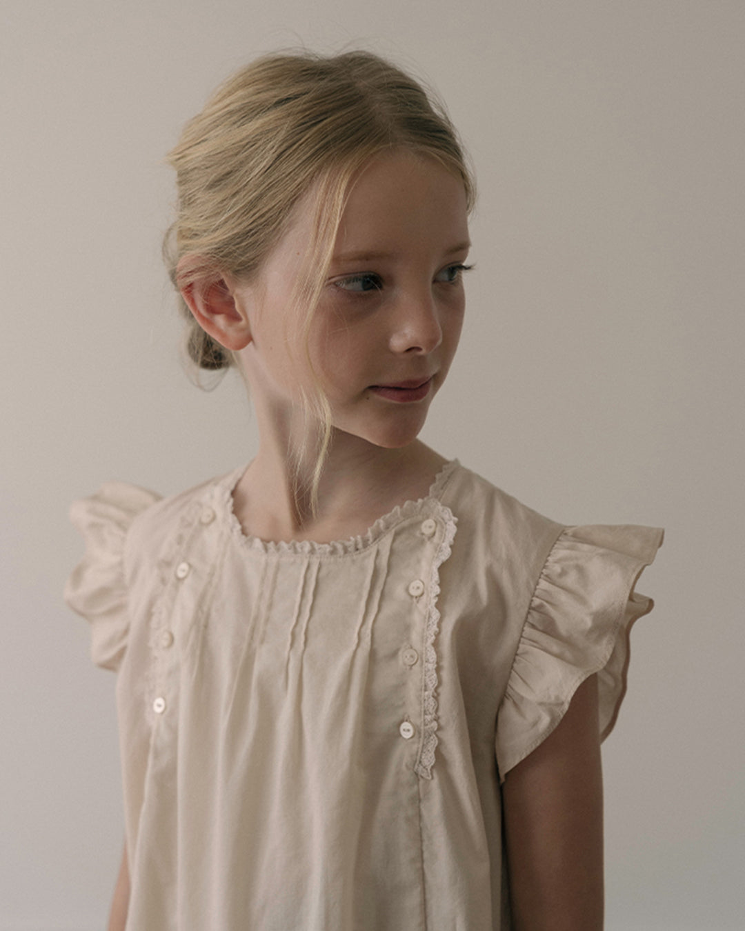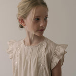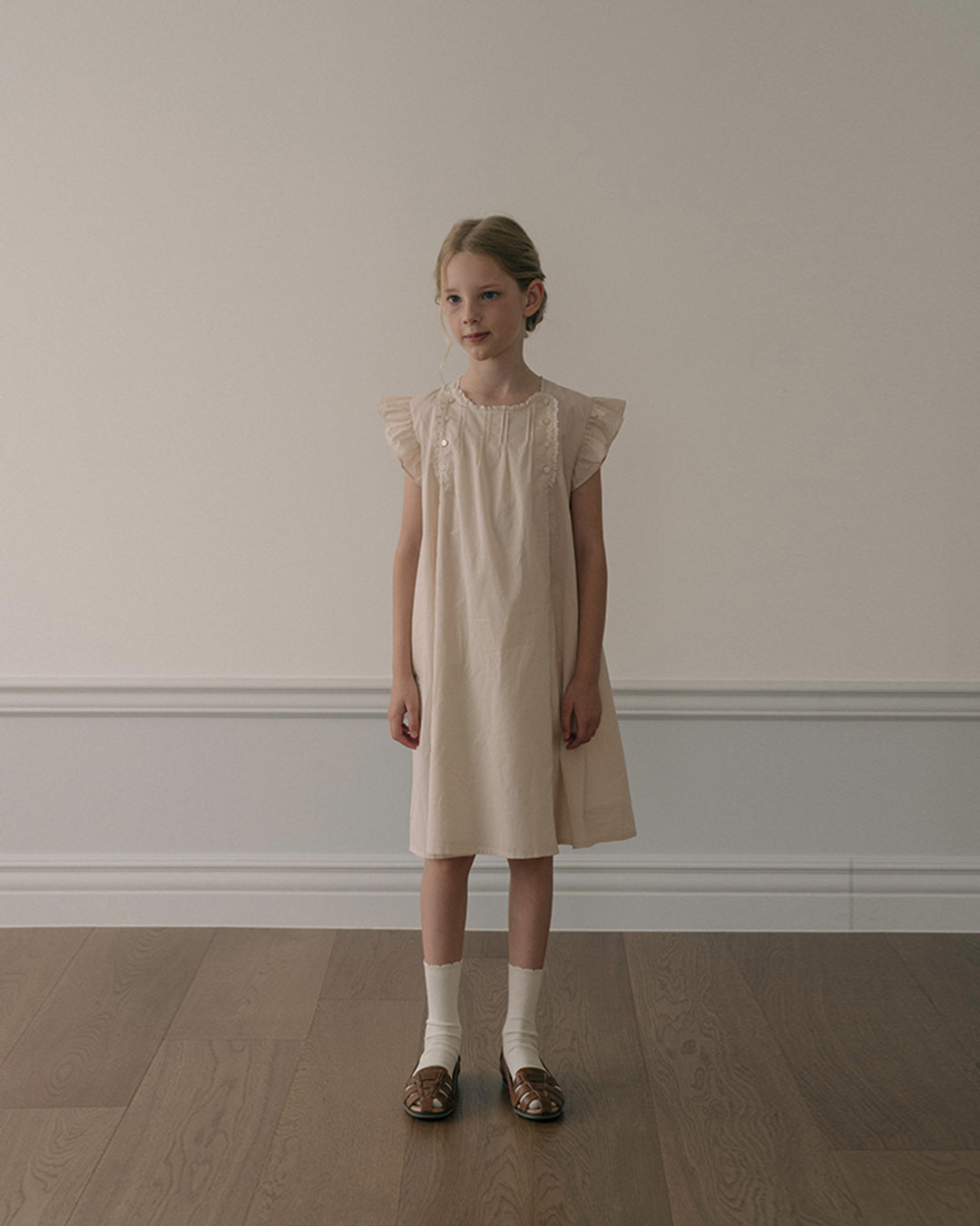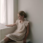 · Soft beige dress with flutter sleeves