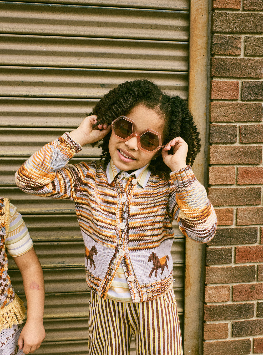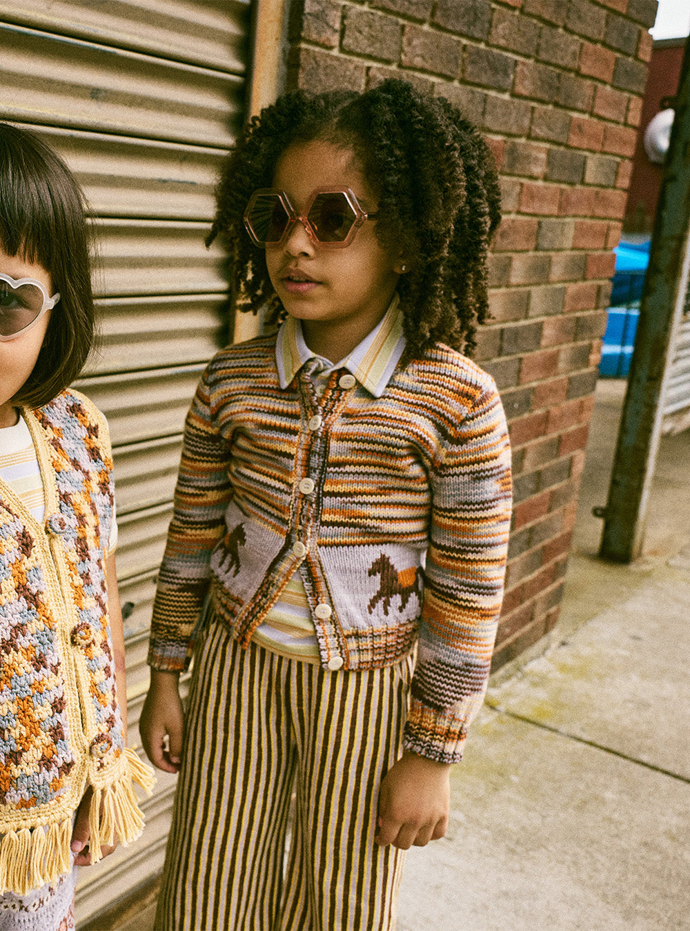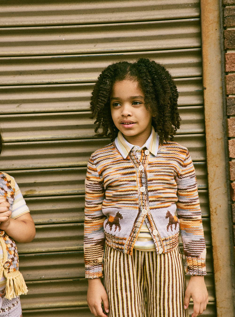 · Hand-knit cardigan in a warm, multi-color space-dyed stripe