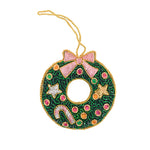 · Adorned with glittering details and metallic fabric.· Dimensions: 3.6" x 3.4" · Handmade in India