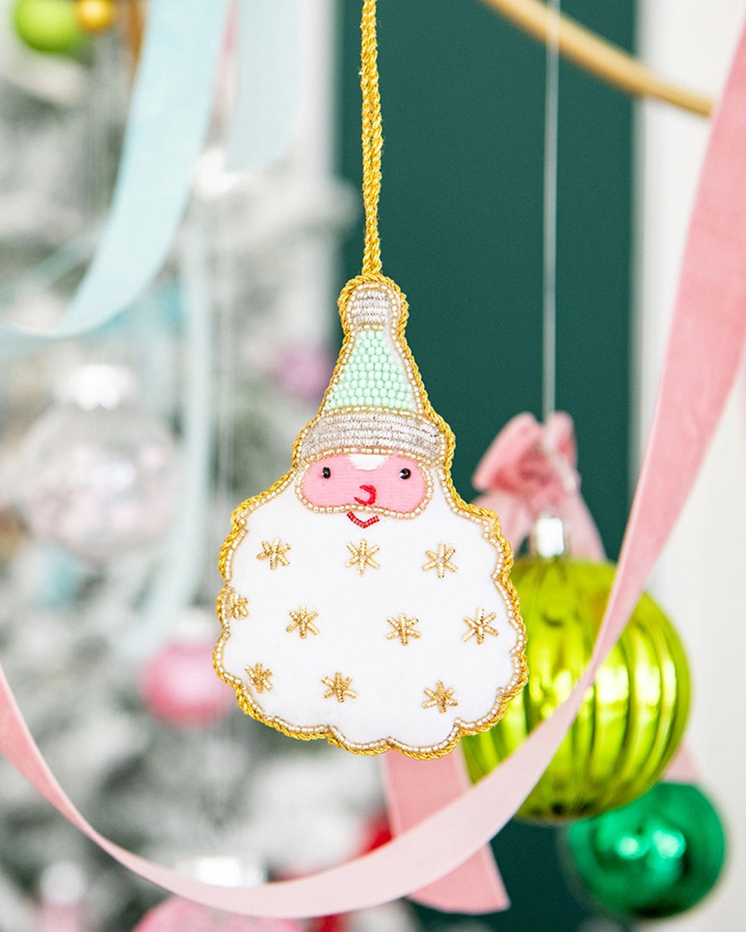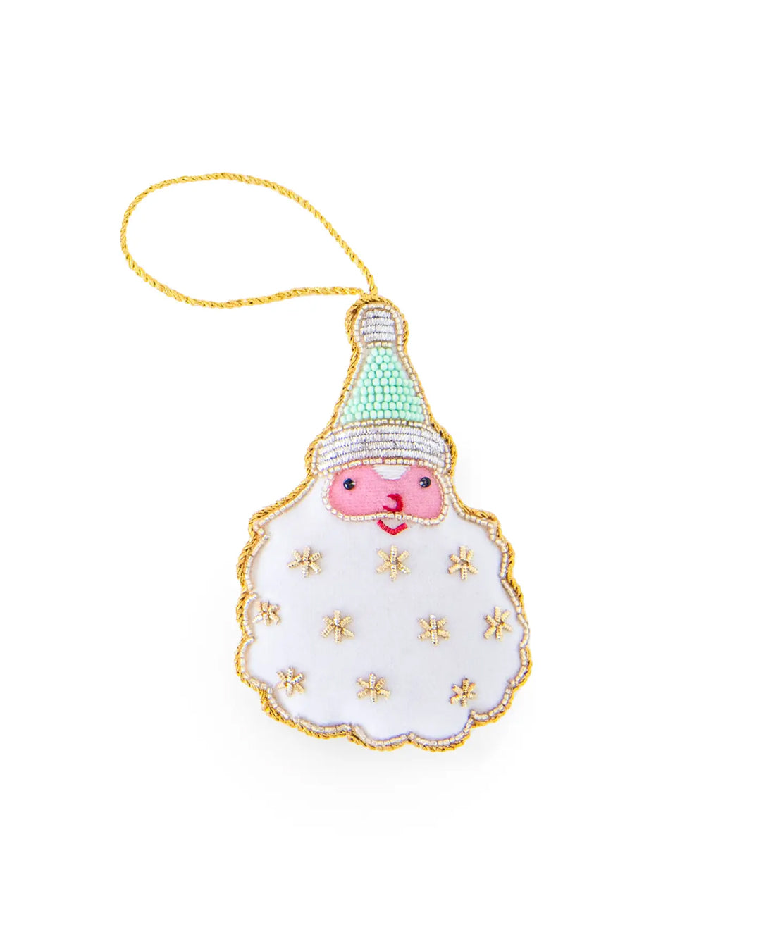 · This charming hand-beaded piece features a cheerful pastel Santa, complete with sparkling gold accents.· Dimensions: 4.25" x 2.75" · Handmade in India