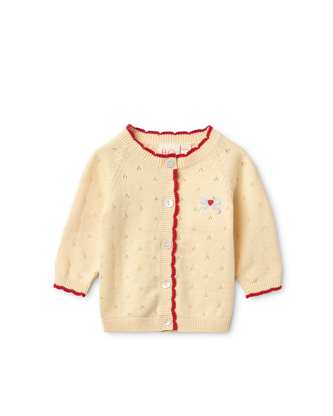 · Soft butter-cream pointelle cardigan with delicate eyelet knit
