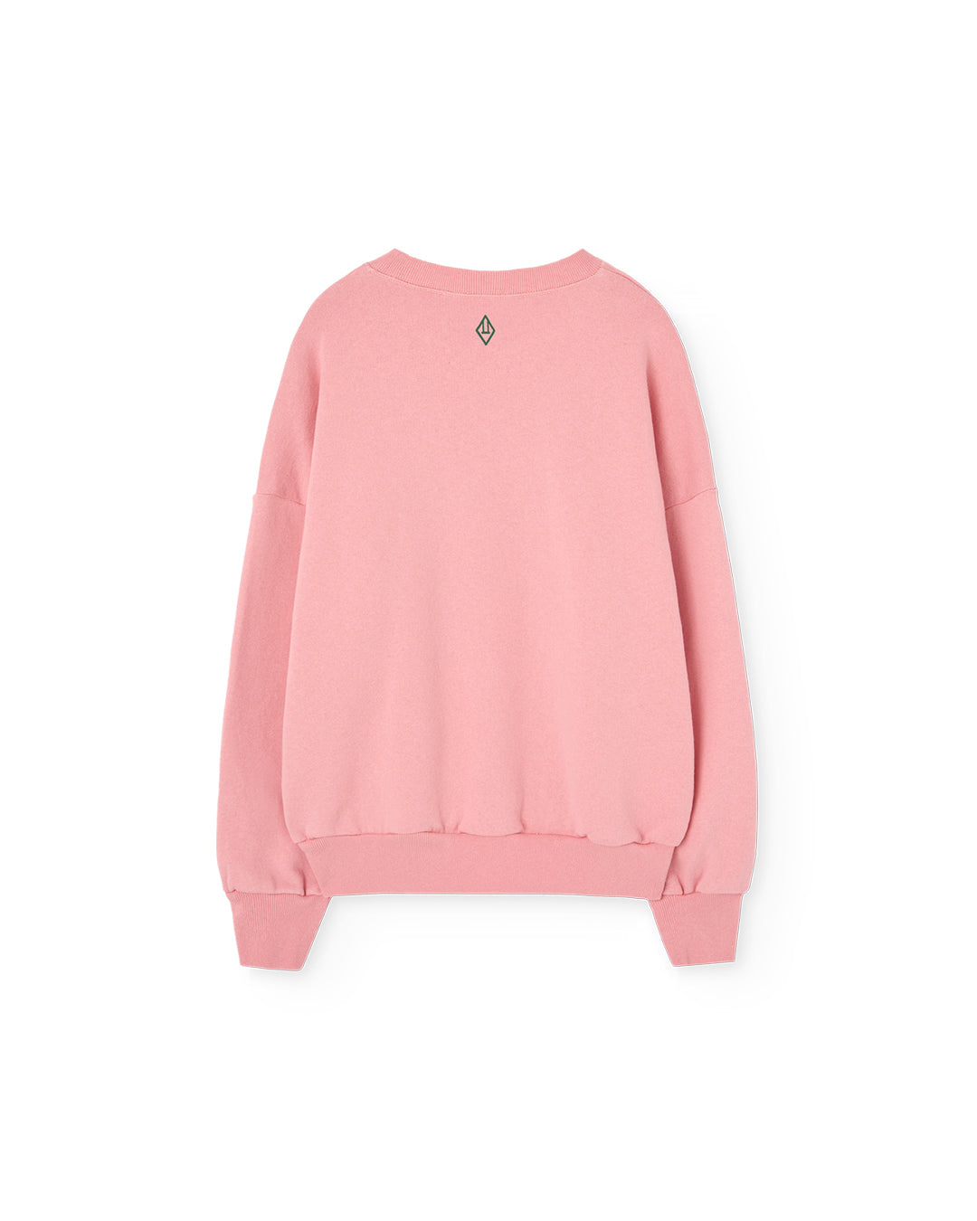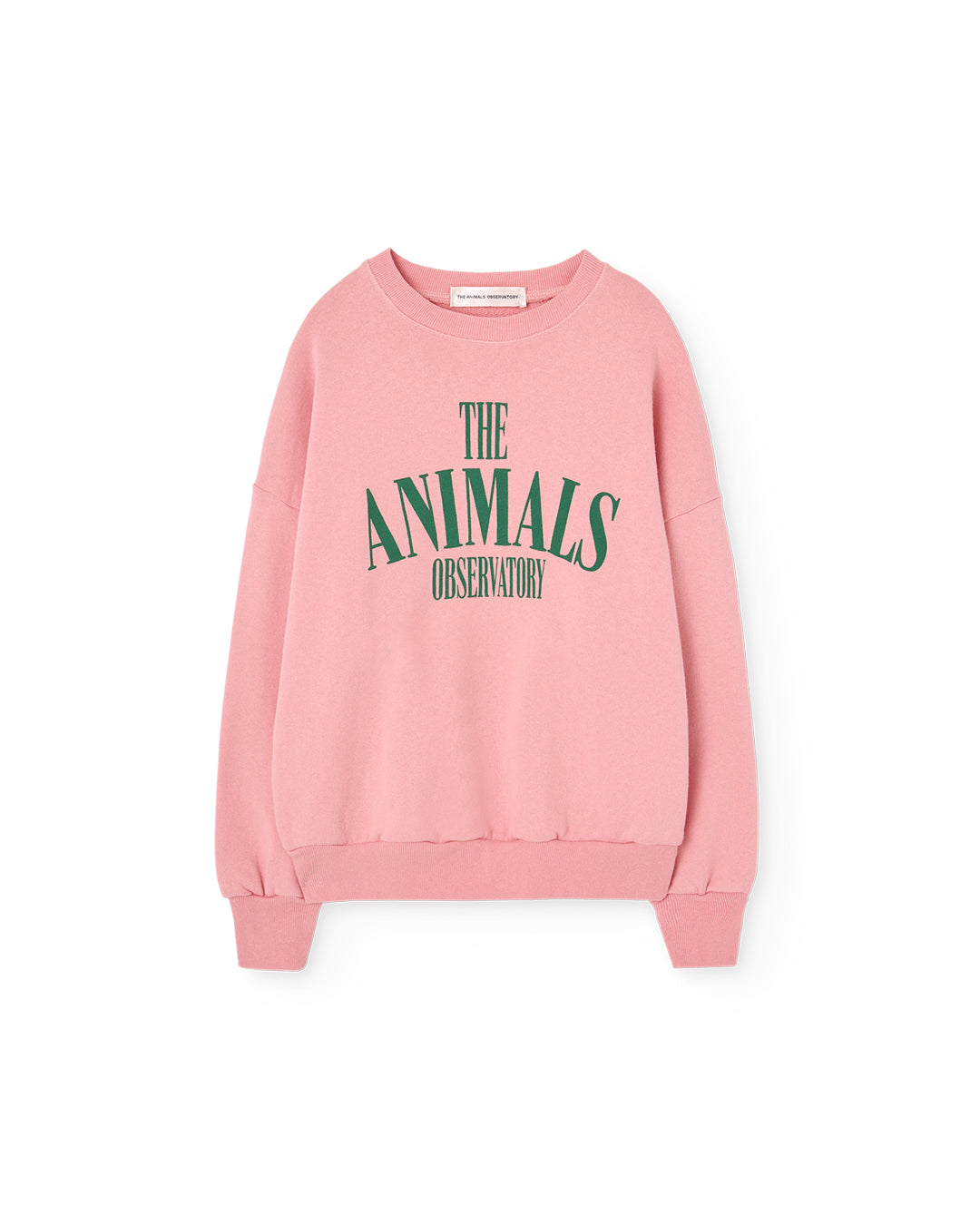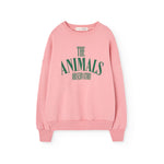 부드러운 핑크 색상의 연한 면 소재 스웨트셔츠에 The Animals Observatory의 상징적인 로고가 프린트되어 있습니다.