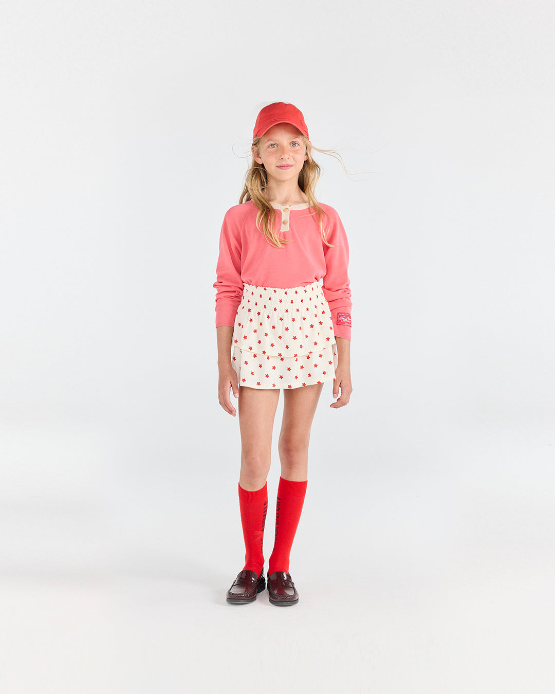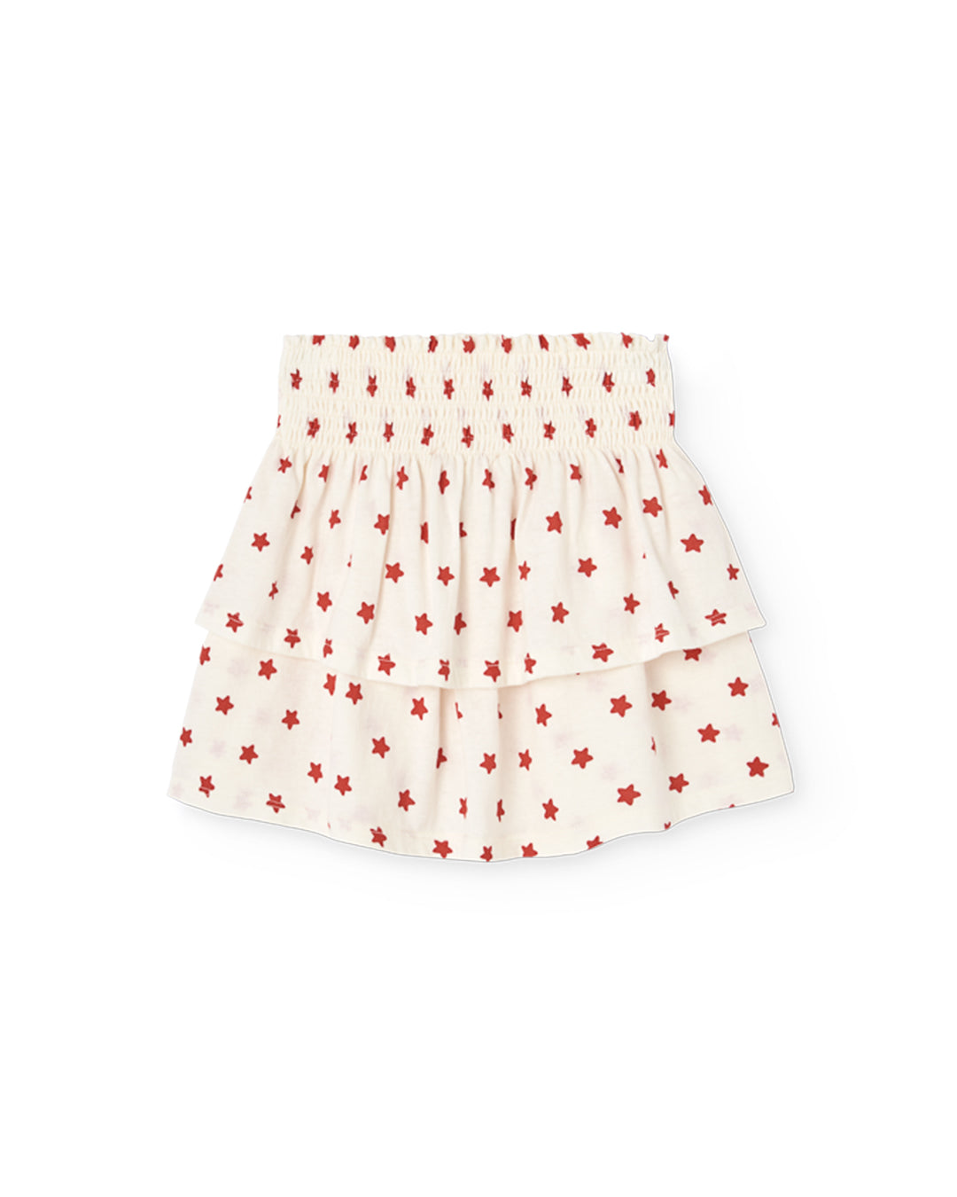 • 전체적으로 빨간 별 무늬가 프린트된 가벼운 면 소재 스커트