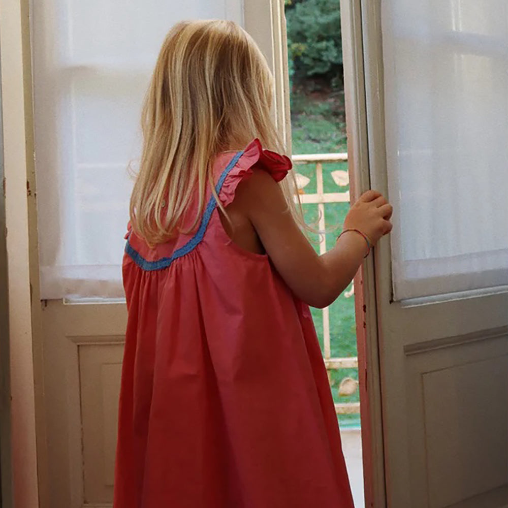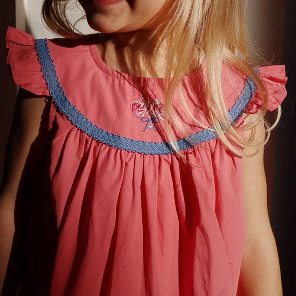 · GOTS 인증 유기농 코튼으로 만든 Konges Sløjd Strawberry Ice Nella 드레스를 귀하의 작은 공주에게 선물하세요.