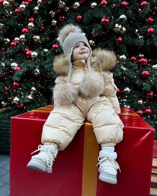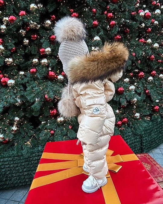 [사전 주문] Mi Loves :: 고급스러운 라쿤 모피 트림 스노우슈트 라이트 베이지 (갈색 모피 포함)