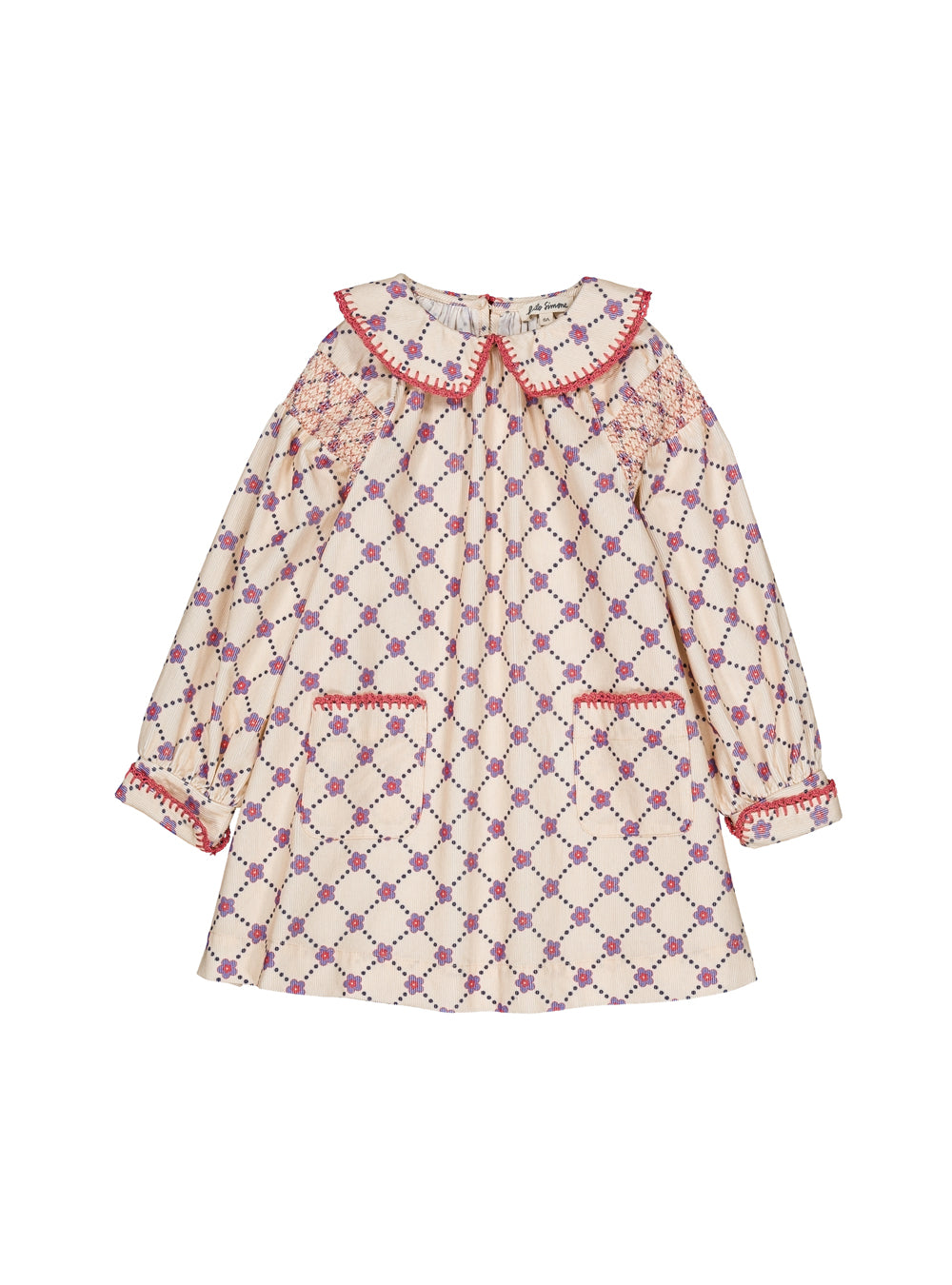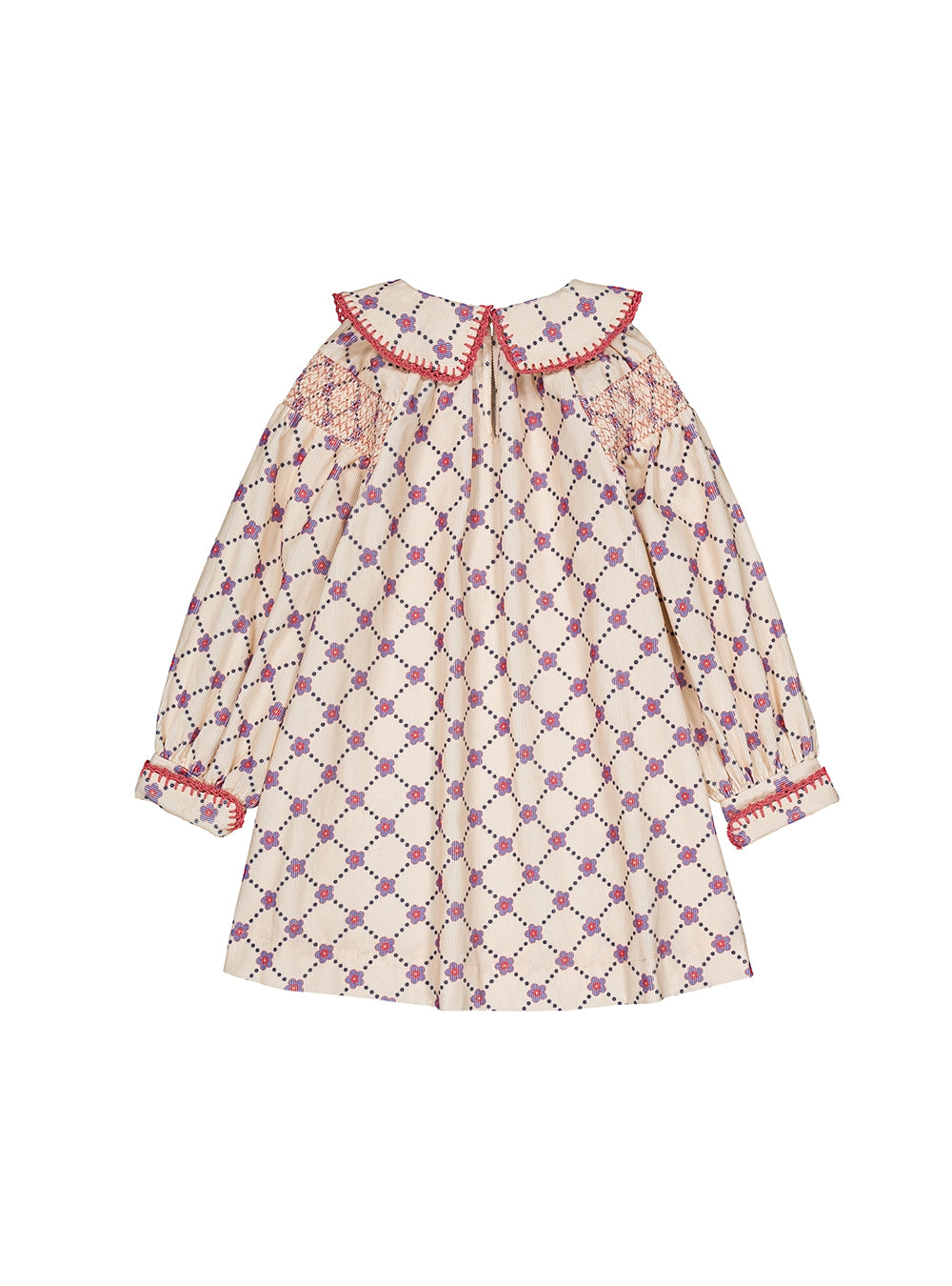 · Peter Pan collar and cuffs trimmed with contrast stitching