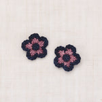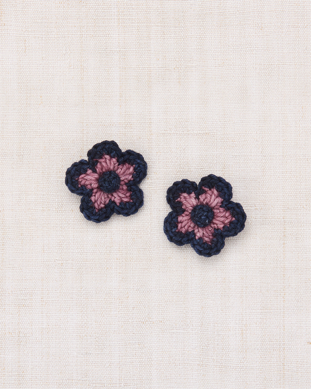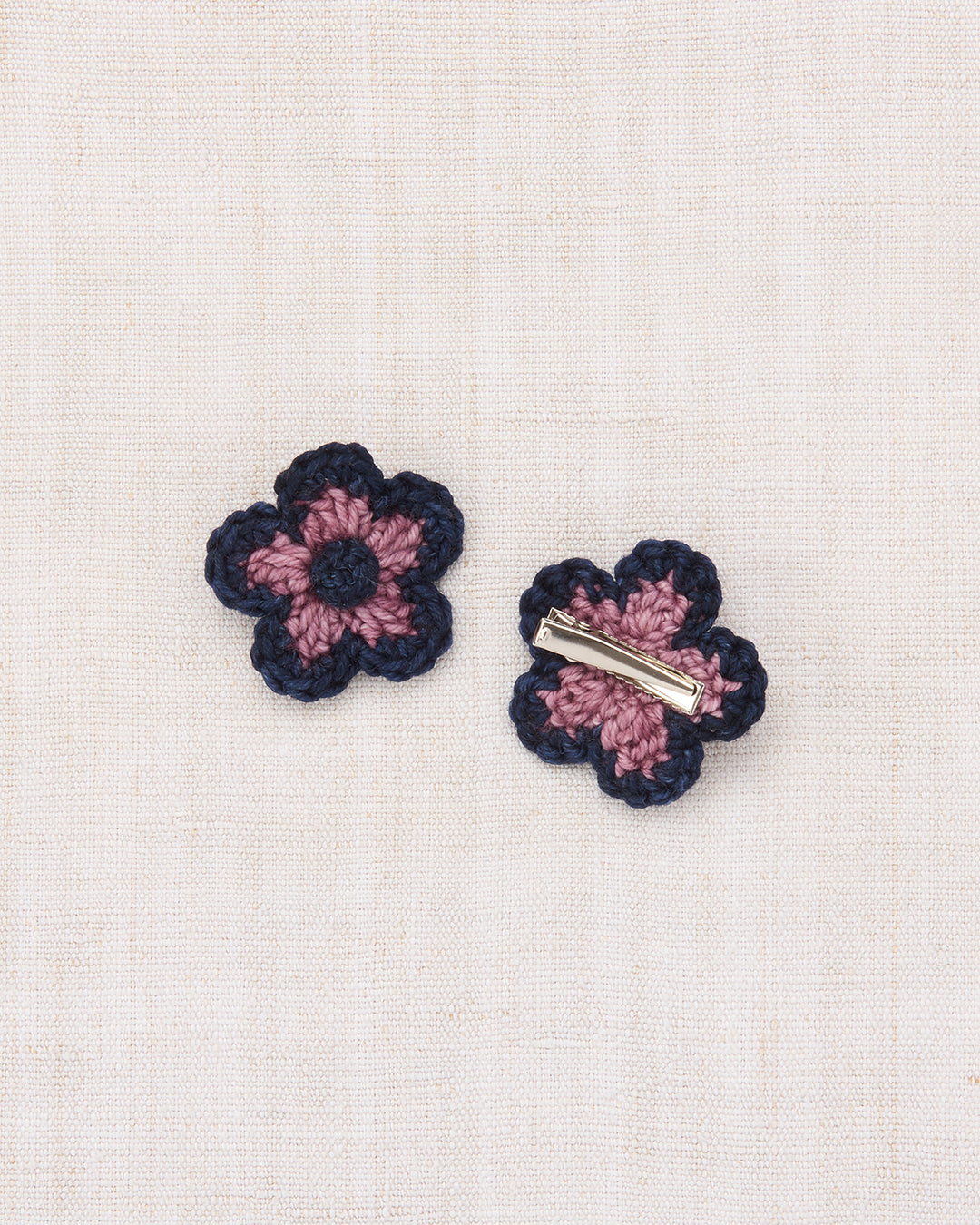 · Set of two· Two-color hand-crocheted flowers on alligator clips