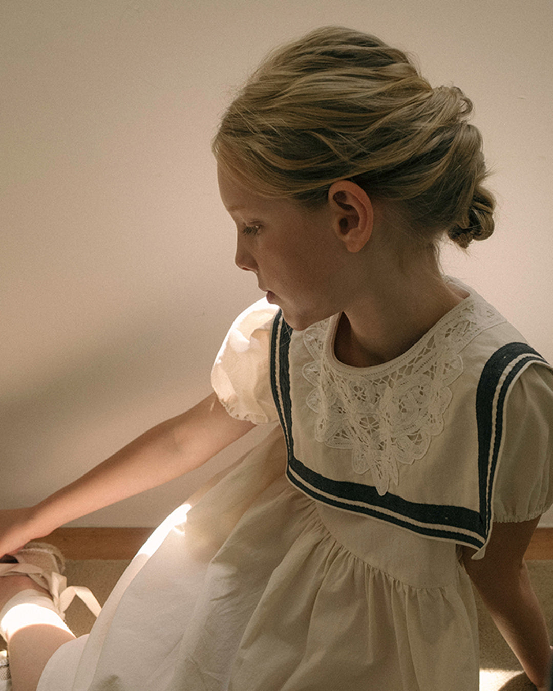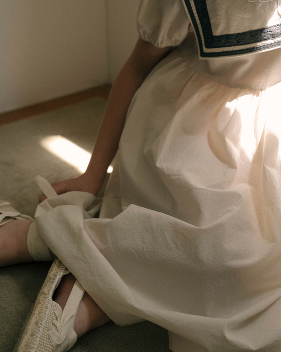 · Soft gathers and puff sleeves for a classic silhouette