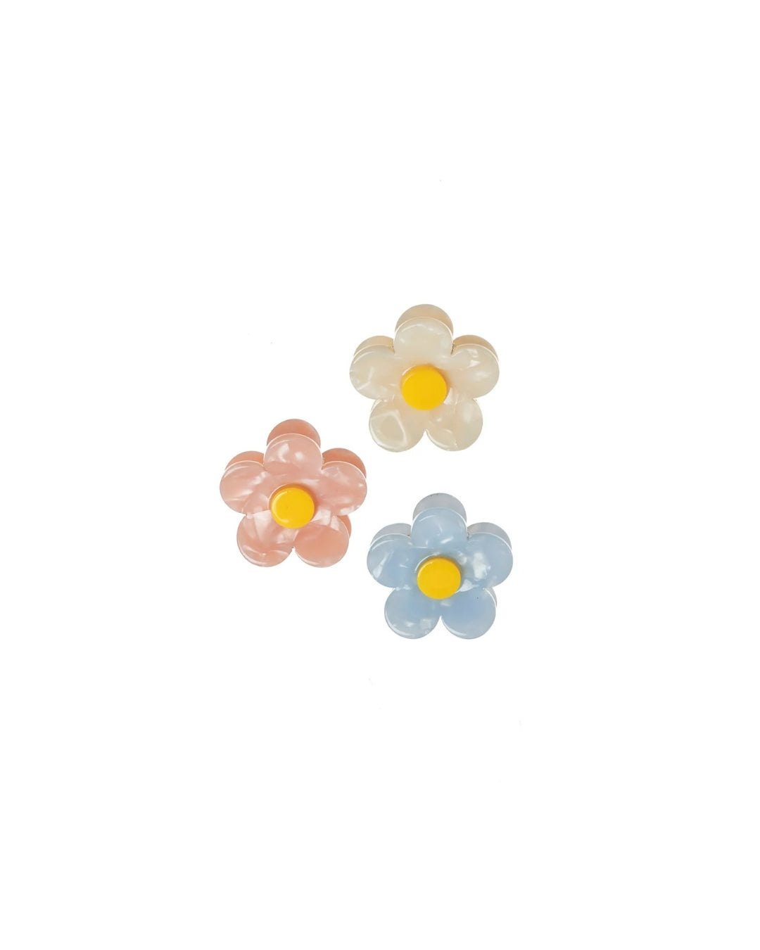 · A sweet set of three mini flower claw clips in soft pastel tones· Each clip features a glossy finish for a playful everyday look· Material: 100% Cellulose Acetate, Metal· Designed in UK