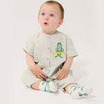 • 짧은 소매에 앞쪽 패치 포켓이 있어 발랄하면서도 실용적인 느낌을 더했습니다.