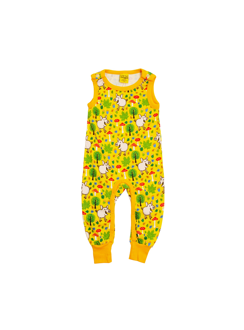 · Sleeveless dungaree with playful pig and acorn all-over print