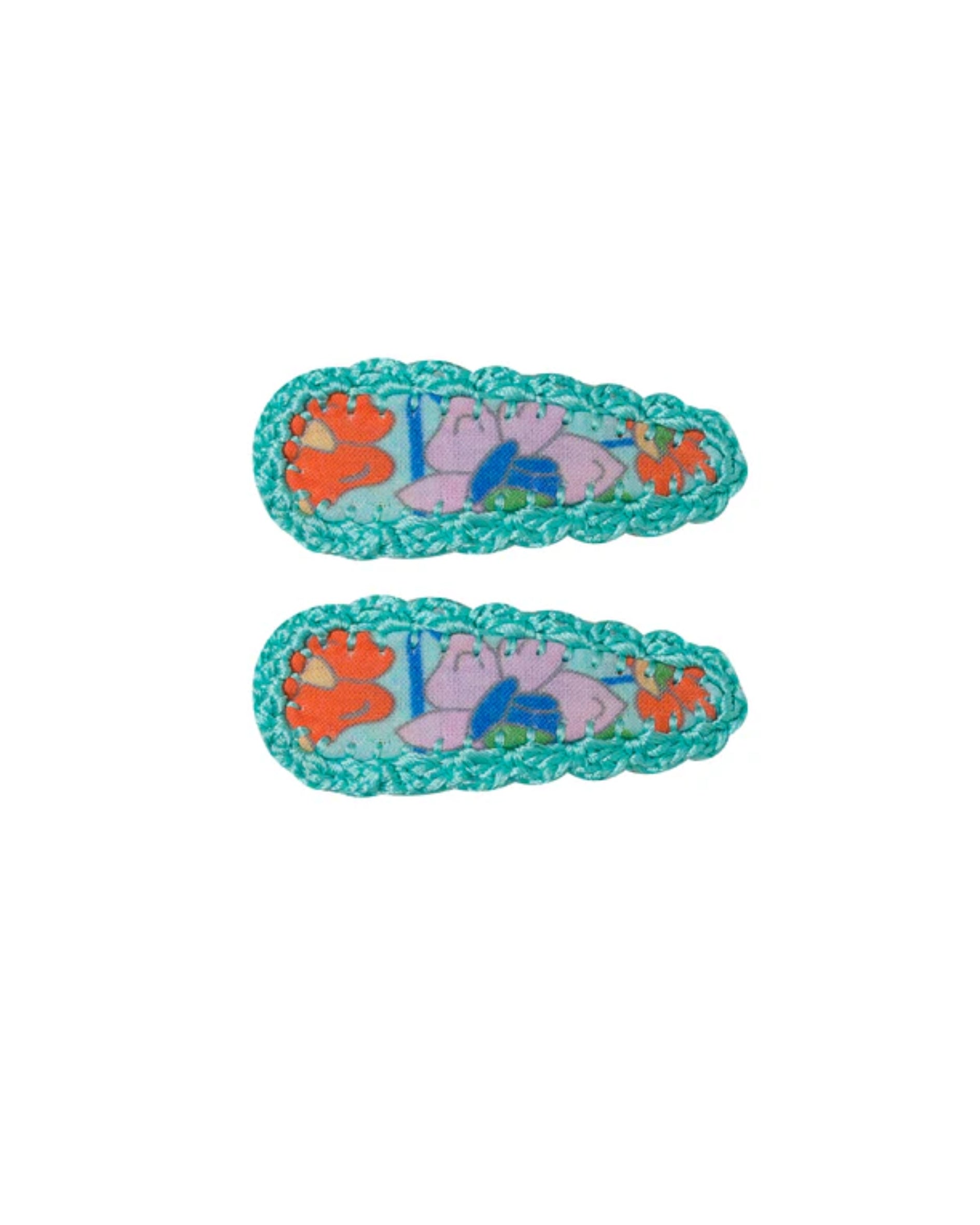 [Pre-Order] Kidsagogo :: Crochet Trim Hair Clip Vite Fiorita Aqua