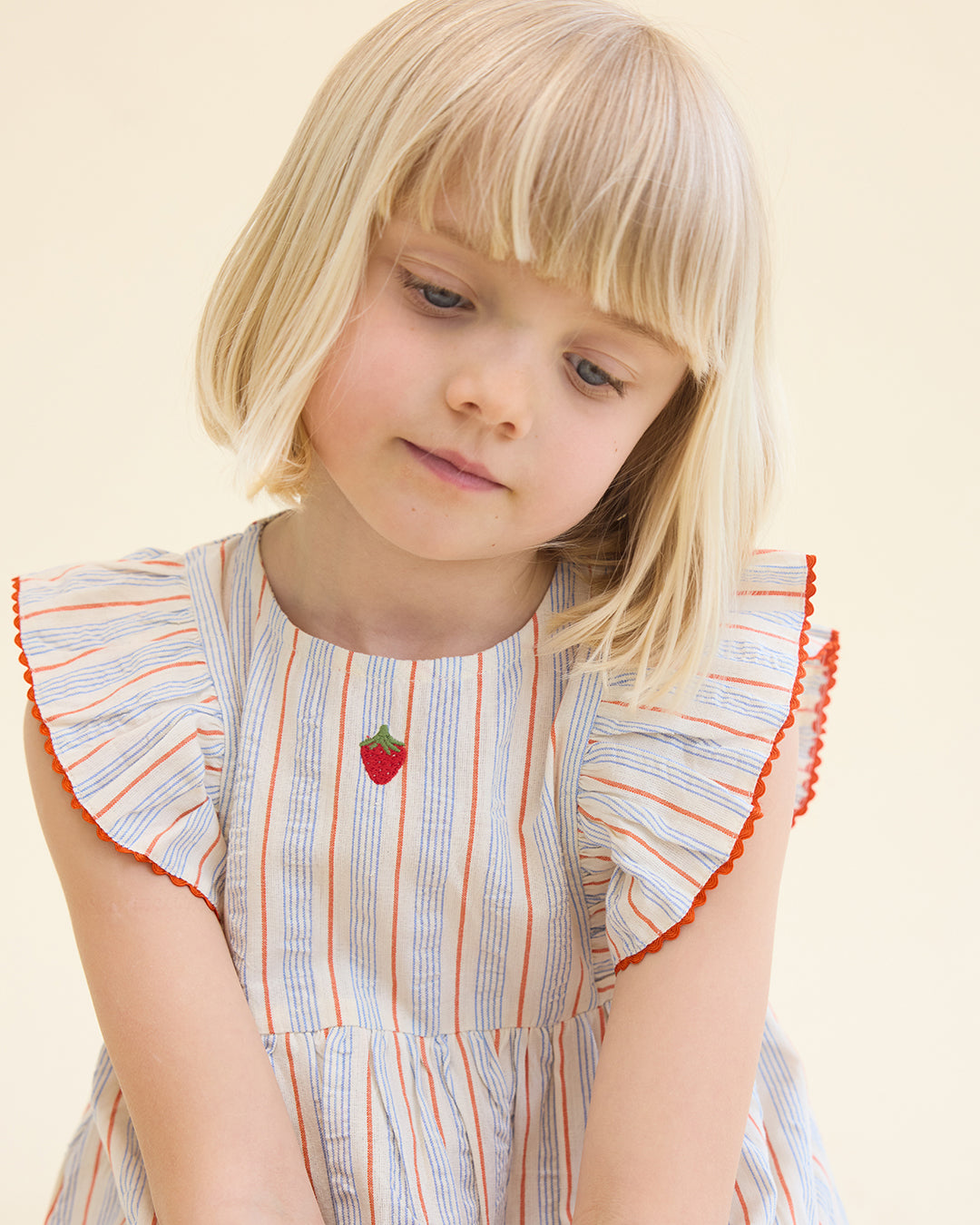 · Sweet strawberry embroidery detail at the chest 🍓