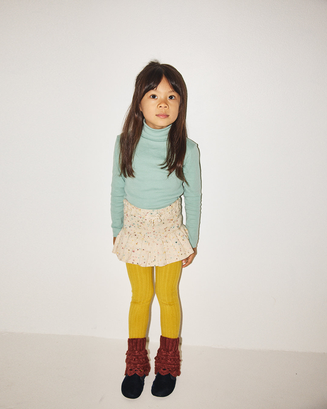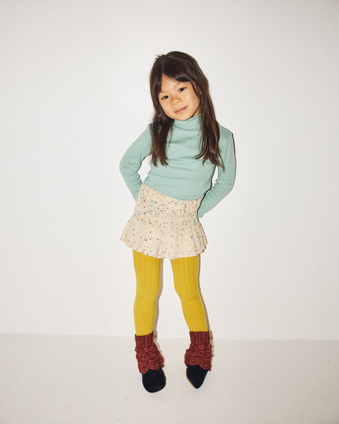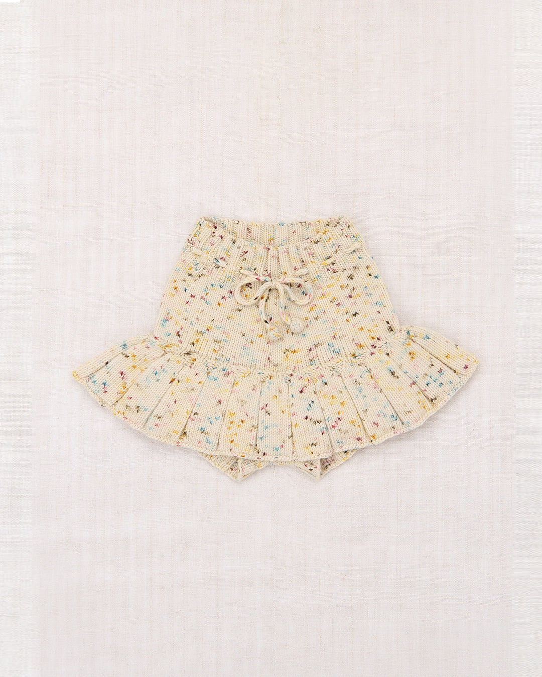 · A sweet knitted skirt in snowglobe confetti with built-in bloomers