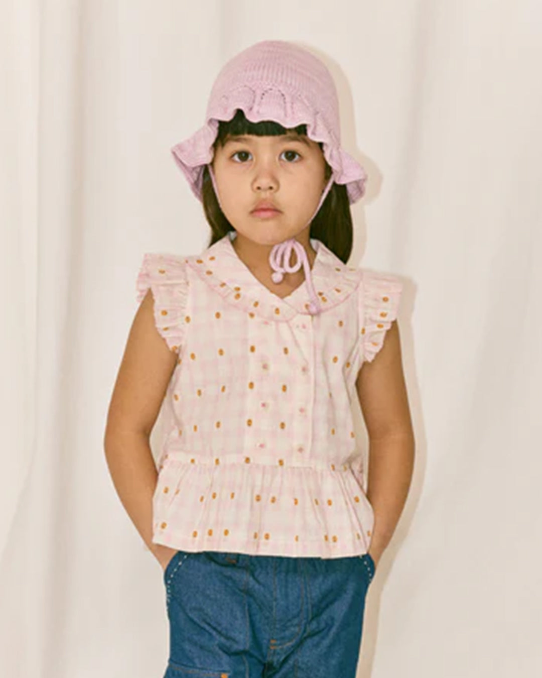· Sweet scalloped brim detail with subtle eyelet pattern