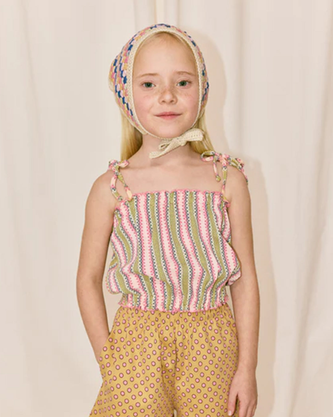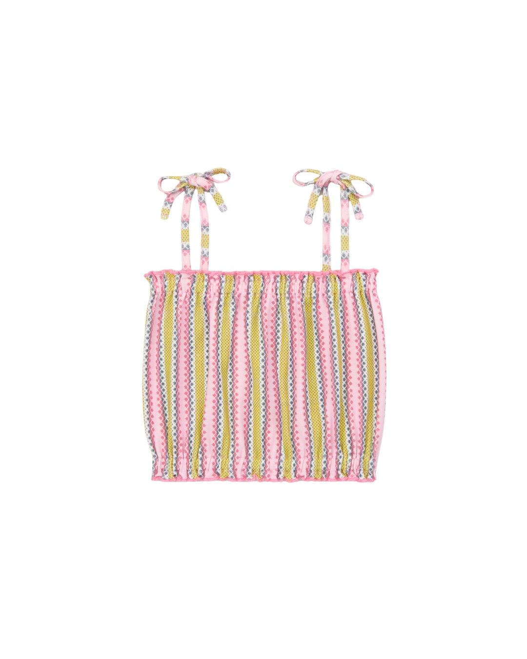· Aura vaquero stripe Sydney top in soft pink, yellow, and blue tones