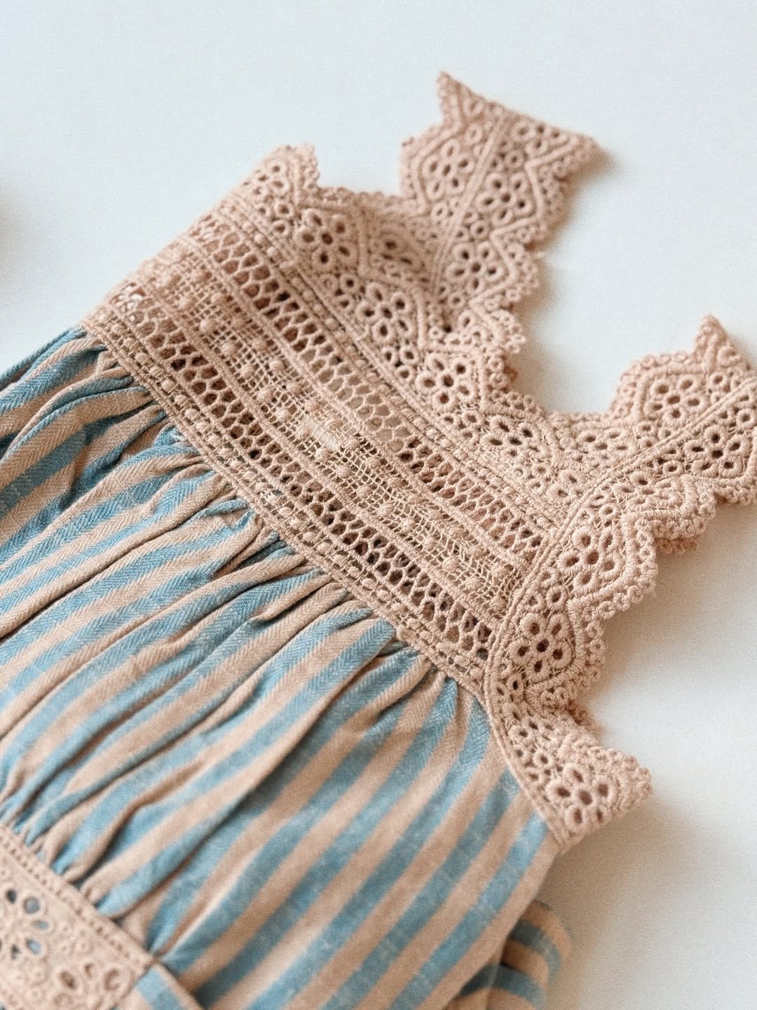 · Finished with intricate lace straps and trim for a refined, vintage-inspired look