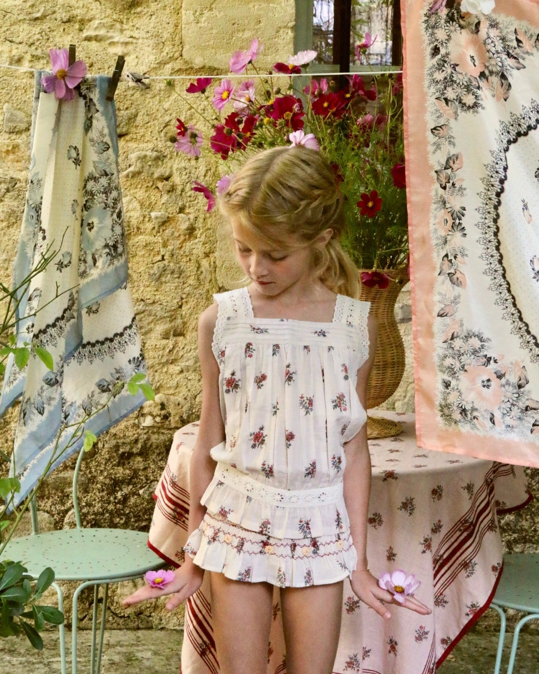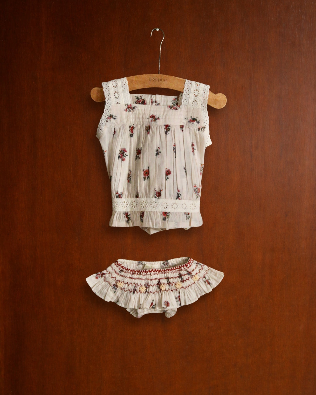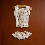 · A delicate two-piece set featuring a softly gathered floral top and matching panty