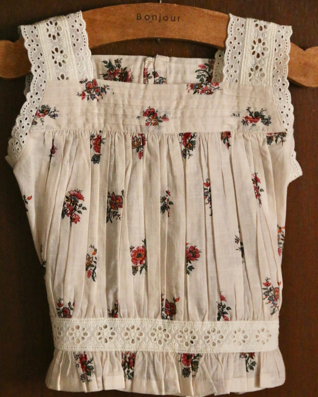 · Finished with eyelet lace straps and trim for a romantic, vintage-inspired touch