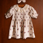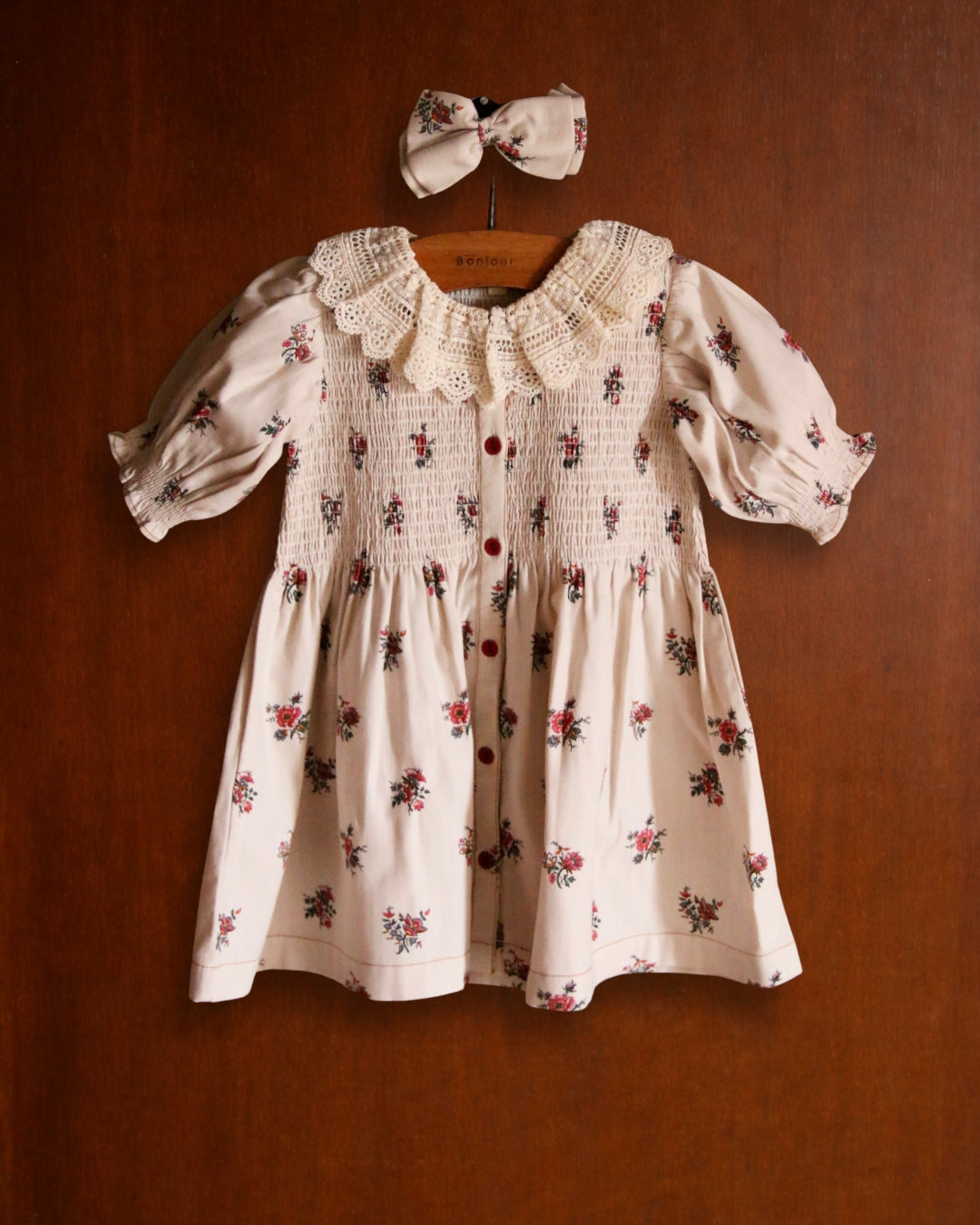 · A delicate garden floral tunique featuring intricate hand-smocking across the bodice