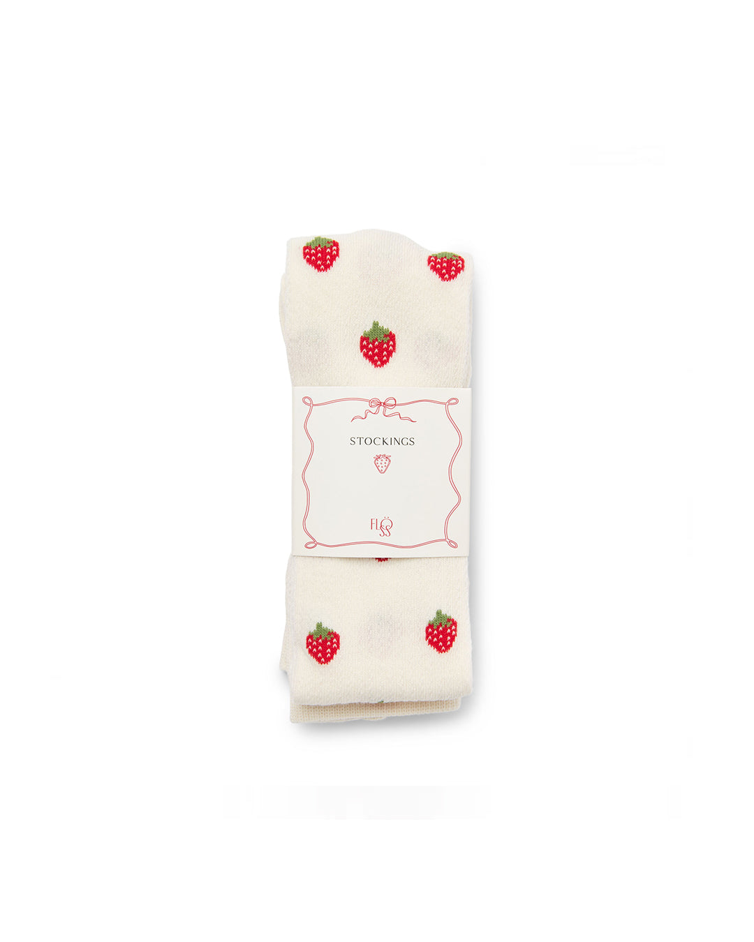 · Soft ivory tights with sweet allover strawberry motif